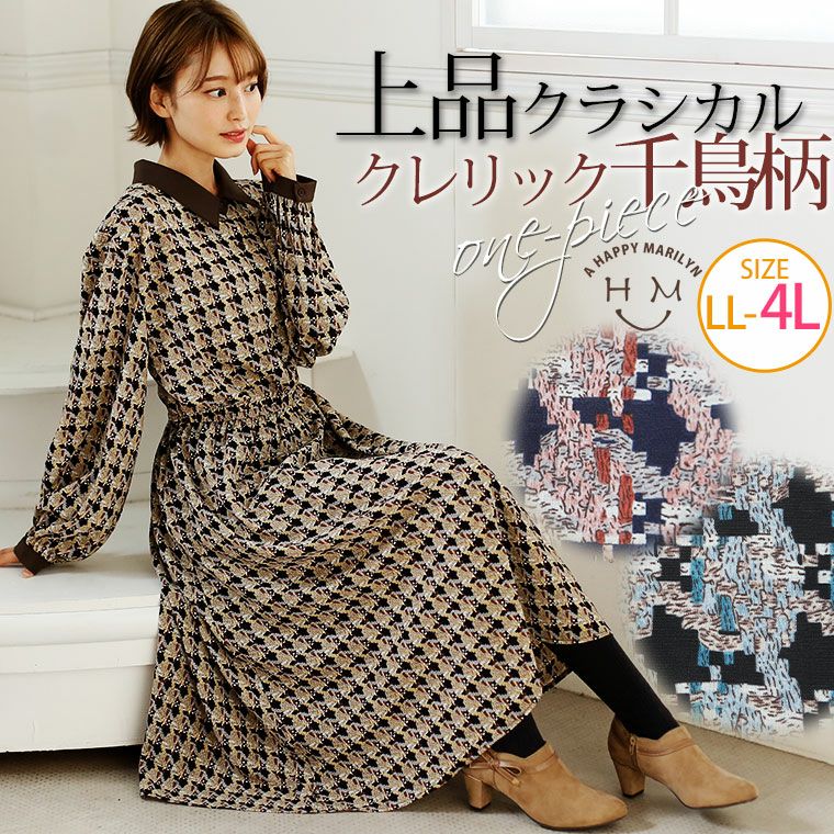 他の画像を見る ワンピ デザインワンピ LL 3L 4L 冬 冬物 冬服 ぽっちゃり ゆったり かわいい おしゃれ カジュアル 千鳥柄 × 無地 配色 クレリックワンピース | 大きいサイズの通販ならハッピーマリリン 価格 ¥ 3,990 税込 在庫切れ お気に入りに登録する