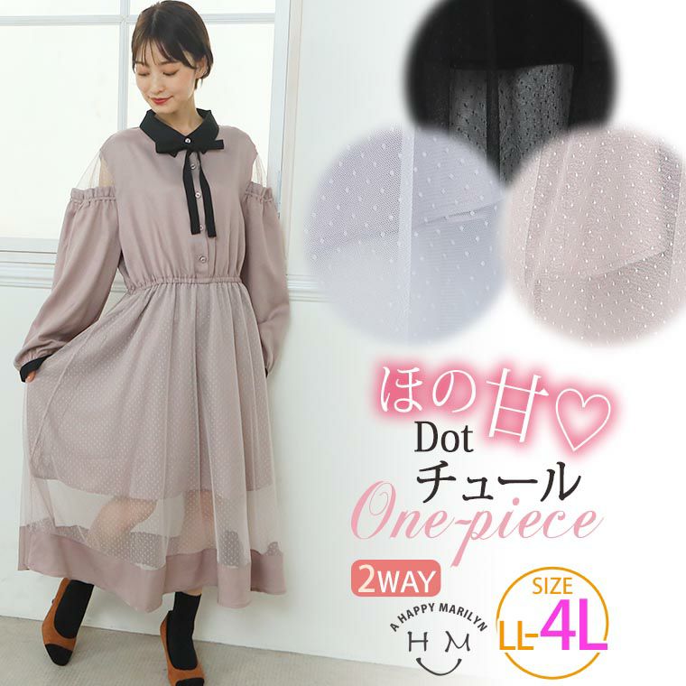 他の画像を見る ワンピ デザインワンピ LL 3L 4L 秋 秋物 秋冬 ぽっちゃり ゆったり 無地ジョーゼット ドットチュール レイヤードワンピース バイカラー | 大きいサイズの通販ならハッピーマリリン 価格 ¥ 3,990 税込 在庫切れ お気に入りに登録する