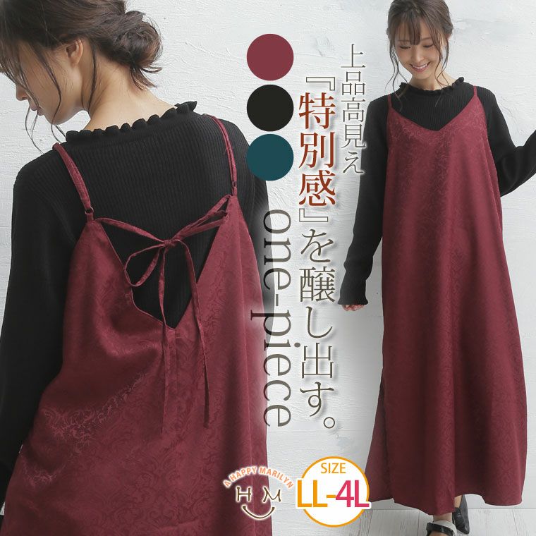 他の画像を見る ワンピ キャミワンピ LL 3L 4L 秋 秋物 秋冬 ぽっちゃり ゆったり かわいい おしゃれ ジャガード ダマスク柄 サイドスリット キャミワンピース | 大きいサイズの通販ならハッピーマリリン 価格 ¥ 3,490 税込 在庫切れ お気に入りに登録する