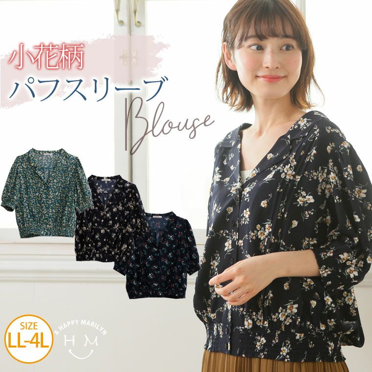 他の画像を見る シャツ トップス LL 3L 4L 夏 夏物 夏服 夏用 ぽっちゃり かわいい おしゃれ カジュアル ピンタック使い 小花プリントデシン パフスリーブ 開襟 五分袖ブラウス | 大きいサイズの通販ならハッピーマリリン 価格 ¥ 2,990 税込 在庫切れ お気に入りに登録する