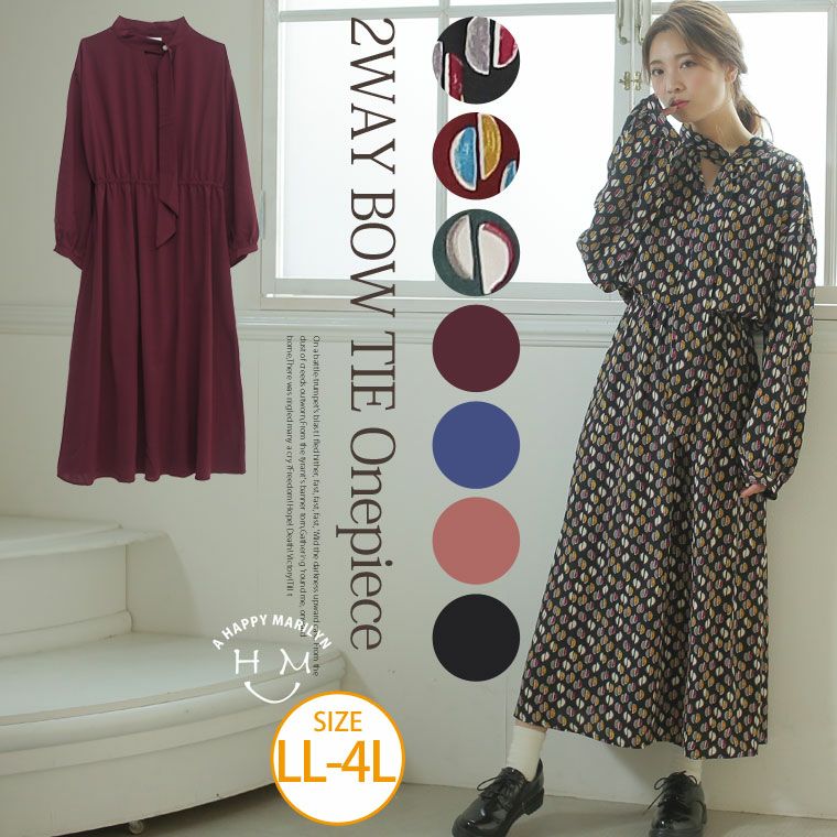 他の画像を見る ワンピ LL 3L 4L 冬 冬物 冬服 ぽっちゃり 選べる 柄と無地 ボウタイ 2WAY 長袖 ロング丈 ワンピース | 大きいサイズの通販ならハッピーマリリン 価格 ¥ 4,290 税込 在庫切れ お気に入りに登録する