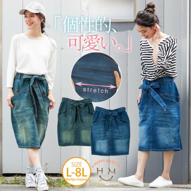 他の画像を見る オリジナル ボトムス LL 3L 4L 5L 6L 7L 8L 夏 夏物 夏服 夏用 ぽっちゃり ゆったり かわいい おしゃれ カジュアル 可愛い 大人 ビッグサイズ ウエストリボン付き ゆるっと 膝下丈 ストレッチ デニムスカート | 大きいサイズの通販ならハッピーマリリン 価格 ¥ 2,638 税込 3.60 在庫切れ お気に入りに登録する