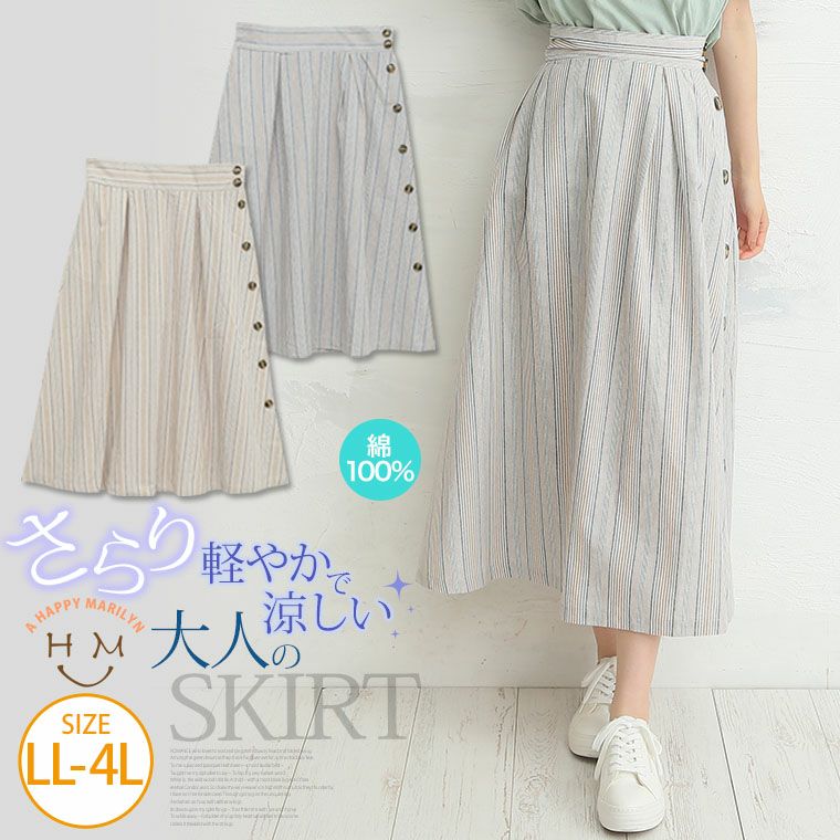 他の画像を見る ボトムスLL 3L 4L 夏 夏物 夏服 夏用 ぽっちゃり ゆったり かわいい カワイイ 可愛い お洒落 オシャレ おしゃれ カジュアル ナチュラル コットン100 ボタンデザインマルチ ストライプ スカート | 大きいサイズの通販ならハッピーマリリン 価格 ¥ 4,064 税込 在庫切れ お気に入りに登録する