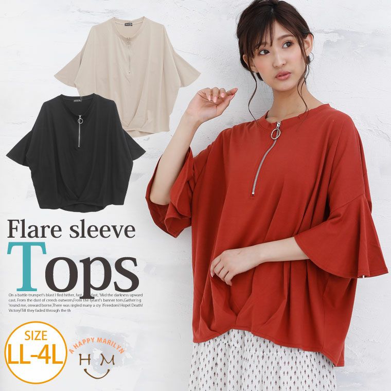 他の画像を見る カットソー LL 3L 4L 夏 夏物 夏服 夏用 ぽっちゃり ゆったり かわいい おしゃれ カジュアル 可愛い 大人 きれいめ ビッグサイズ 体型カバー フレアスリーブ 半袖 リングジップ プルオーバー【メール便可1】 | 大きいサイズの通販ならハッピーマリリン 価格 ¥ 2,536 税込 在庫切れ お気に入りに登録する