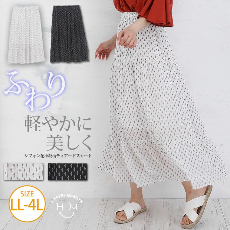 他の画像を見る ボトムス ロングスカート ロング丈スカート LL 3L 4L 夏 夏物 夏服 夏用 ぽっちゃり かわいい おしゃれ カジュアル 可愛い シフォン 花小紋柄プリント ロング丈 ティアードスカート | 大きいサイズの通販ならハッピーマリリン 価格 ¥ 3,555 税込 在庫切れ お気に入りに登録する