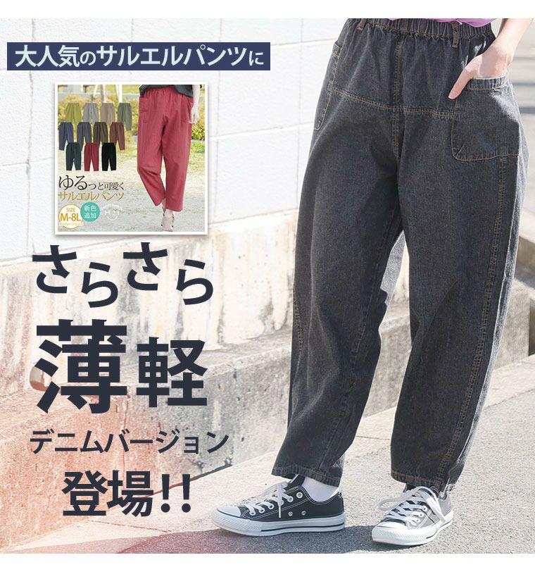 他の画像を見る ボトムス サルエルパンツ デニムパンツ LL 3L 4L 5L 6L 春 春物 春服 夏 夏物 夏服 ぽっちゃり ゆったり プラスサイズ かわいい おしゃれ お尻 太もも 太もも周りが楽に穿ける サルエル デニムパンツ【ウェストゴム】 | 大きいサイズの通販ならハッピーマリリン 価格 ¥ 2,990 税込 4.13 お気に入りに登録する