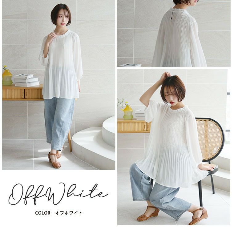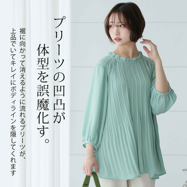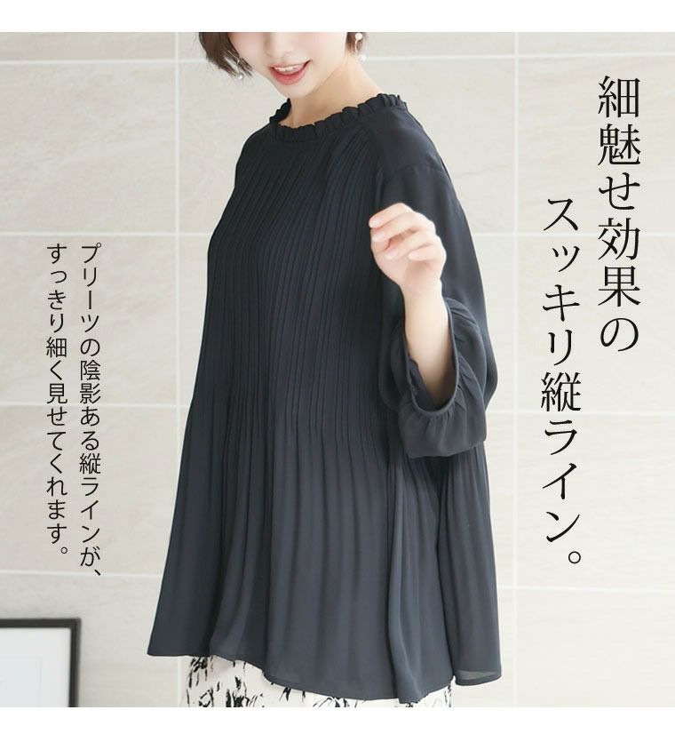 他の画像を見る シャツ トップス LL 3L 4L 5L 6L 春 春物 春服 夏 夏物 夏服 ぽっちゃり ゆったり プラスサイズ かわいい おしゃれ カジュアル お腹 腰周り 【プリーツで包み込む】 七分袖・総プリーツ ブラウス | 大きいサイズの通販ならハッピーマリリン 価格 ¥ 3,290 税込 4.40 お気に入りに登録する