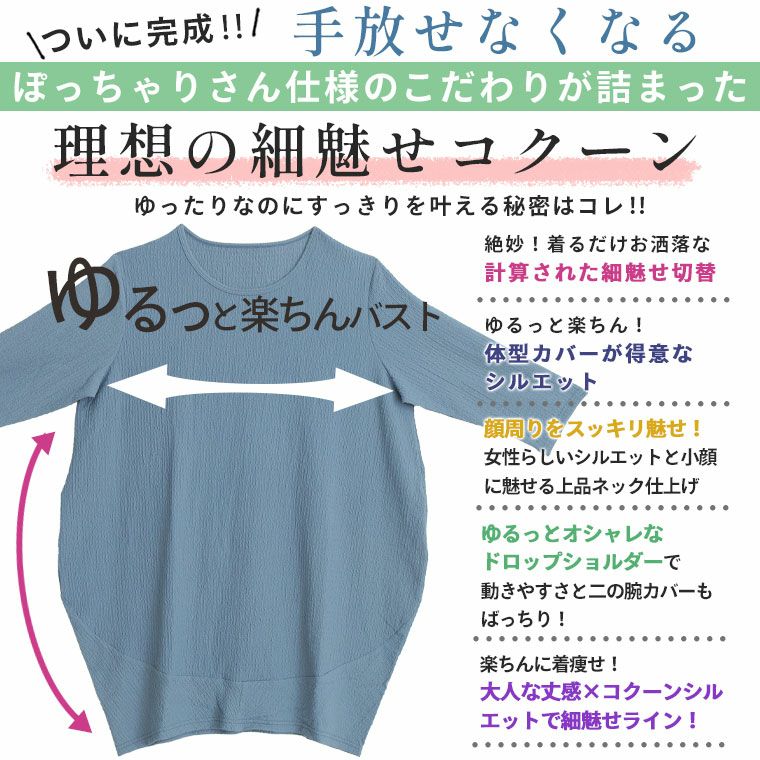 他の画像を見る オリジナル カットソー プルオーバー LL 3L 4L 5L 6L お腹 お尻 ぽっちゃりさんご用達! ラインを拾わず体型カバー 七分袖と長袖で選べる しぼしぼコクーン ふくれ ぽこぽこ 凹凸 ジャガード | 大きいサイズの通販ならハッピーマリリン 在庫特価 定価 ¥ 1,980 のところ 価格 ¥ 999 税込 3.30 お気に入りに登録する