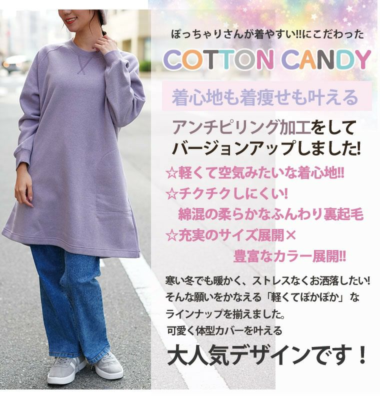 他の画像を見る オリジナル トレーナー プルオーバー LL 3L 4L 5L 6L 7L 8L 長袖 冬 冬物 冬服 ぽっちゃり ゆったり プラスサイズ スウェット ワンピ 【COTTON CANDYシリーズ】 裏起毛 ラグランチュニック | 大きいサイズの通販ならハッピーマリリン 在庫特価 定価 ¥ 2,790 のところ 価格 ¥ 2,000 税込 4.00 お気に入りに登録する