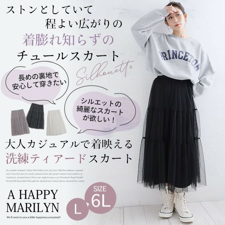 他の画像を見る スカート ボトムス ロングスカート LL 3L 4L 5L 6L 冬 冬物 冬服 ぽっちゃり ゆったり プラスサイズ かわいい おしゃれ カジュアル フェミニン 華やか チュール ティアード スカート | 大きいサイズの通販ならハッピーマリリン 在庫特価 定価 ¥ 2,990 のところ 価格 ¥ 2,500 税込 4.58 お気に入りに登録する