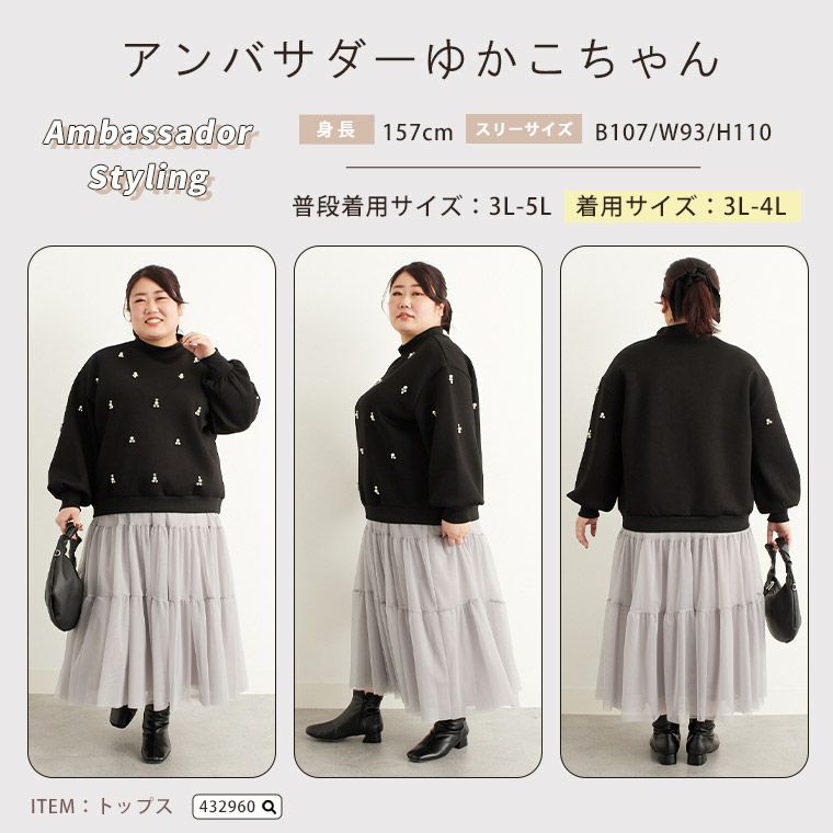 他の画像を見る オリジナル トップス プルオーバー LL 3L 4L 5L 6L 長袖 冬 冬物 冬服 ぽっちゃり ゆったり プラスサイズ 春 イベントシーズンは華やかに!!ラメ スウェット チュール ドッキング トップス | 大きいサイズの通販ならハッピーマリリン 価格 ¥ 3,490 税込 4.83 お気に入りに登録する