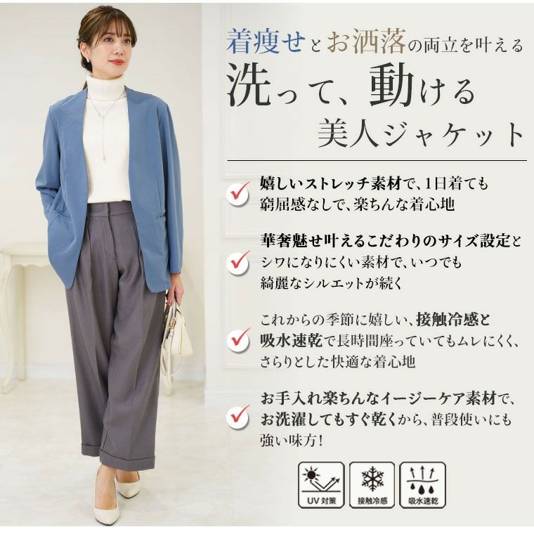 他の画像を見る コート LL 3L 4L 5L 6L 長袖 冬 冬物 冬服 ぽっちゃり ゆったり プラスサイズ オフィス 大人 着やせ Rin 綺麗のための嬉しい多機能 ストレッチ カットジョーゼット ノーカラー ジャケット【セレモニー】 | 大きいサイズの通販ならハッピーマリリン 在庫特価 定価 ¥ 4,490 のところ 価格 ¥ 3,000 税込 3.75 お気に入りに登録する