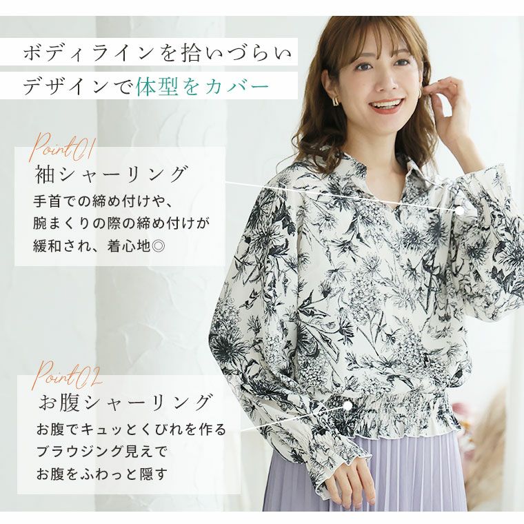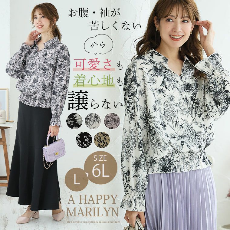 他の画像を見る オリジナル ブラウス シャツ トップス LL 3L 4L 5L 6L 秋 冬 シャーリング 柄ブラウス フレア袖 ぽっちゃり ゆったり キュッとしてても苦しくない! ウエストが伸びーる 開襟 ブラウス | 大きいサイズの通販ならハッピーマリリン 価格 ¥ 2,990 税込 3.33 お気に入りに登録する