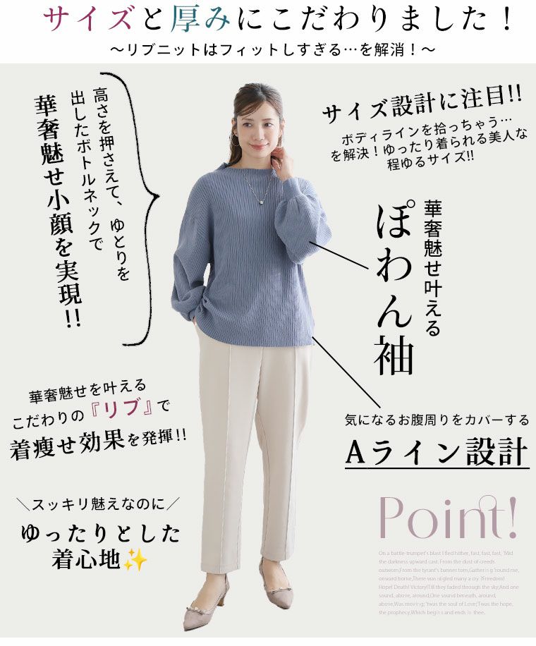 他の画像を見る セーター トップス LL 3L 4L 5L 6L 7L 8L 冬 冬物 冬服 ぽっちゃり ゆったり お腹 新色追加!! Rin フィットしすぎない! 細魅せ叶える! 華奢魅せ美人 もっちり リブ 長袖 ぽわん袖ニット | 大きいサイズの通販ならハッピーマリリン 価格 ¥ 2,190 税込 4.54 お気に入りに登録する