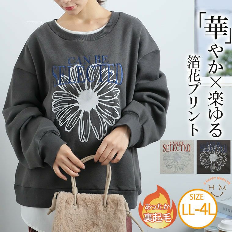 他の画像を見る トレーナー LL 3L 4L 長袖 冬 冬物 冬服 裏起毛 プルオーバー ドロップショルダー トレンド ぽっちゃり ゆったり 春 着るだけ「華やか」フラワー箔プリント ロゴ刺繍 裏起毛 スウェット | 大きいサイズの通販ならハッピーマリリン 価格 ¥ 3,190 税込 5.00 お気に入りに登録する