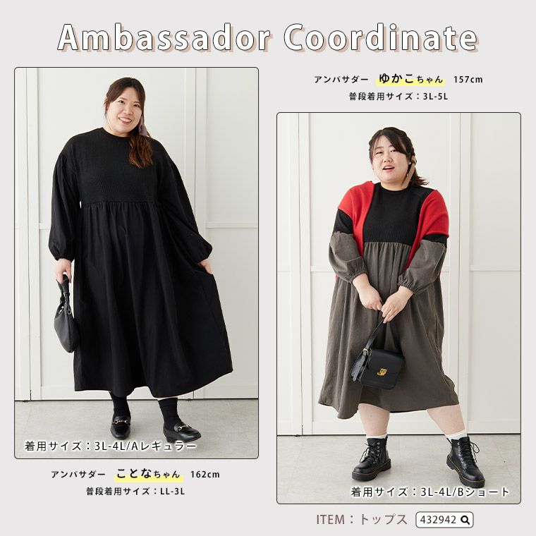 他の画像を見る オリジナル ワンピ デザインワンピ LL 3L 4L 5L 6L 長袖 冬 冬物 冬服 ぽっちゃり 考えずに完成♪ タイプ別で選べる レイヤード風 ドッキングワンピース | 大きいサイズの通販ならハッピーマリリン 小柄さん丈有 在庫特価 定価 ¥ 3,790 のところ 価格 ¥ 3,000 税込 4.13 お気に入りに登録する