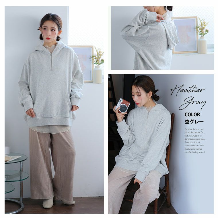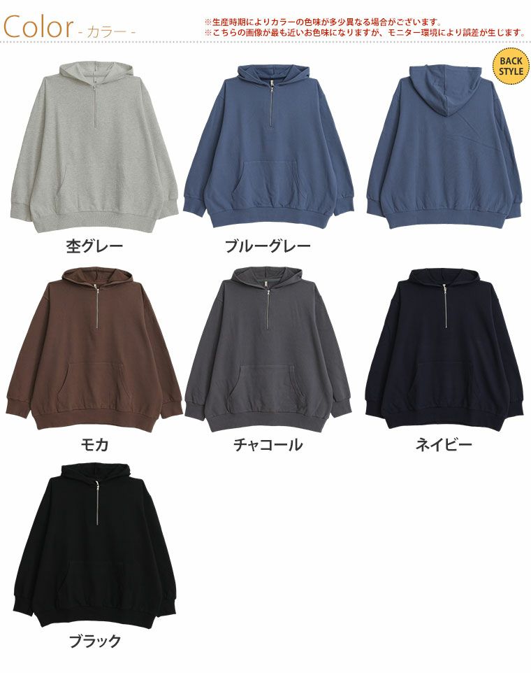 他の画像を見る オリジナル トップス パーカー トレーナー スウェット LL 3L 4L 5L 6L 7L 8L 秋 冬 ぽっちゃり ゆったり 春 【裏 起毛の服苦手さんにおススメ】 ゆるシルエット ハーフ ジップ パーカー | 大きいサイズの通販ならハッピーマリリン 価格 ¥ 3,990 税込 3.61 お気に入りに登録する