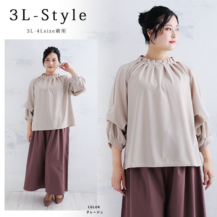 他の画像を見る ブラウス シャツ トップス LL 3L 4L 5L 6L 秋 秋物 秋服 冬 冬物 冬服 ぽっちゃり ゆったり プラスサイズ かわいい Rin 洗練細魅せ 美人ポーラ パール使い キャンディスリーブ ブラウス | 大きいサイズの通販ならハッピーマリリン 価格 ¥ 4,490 税込 お気に入りに登録する