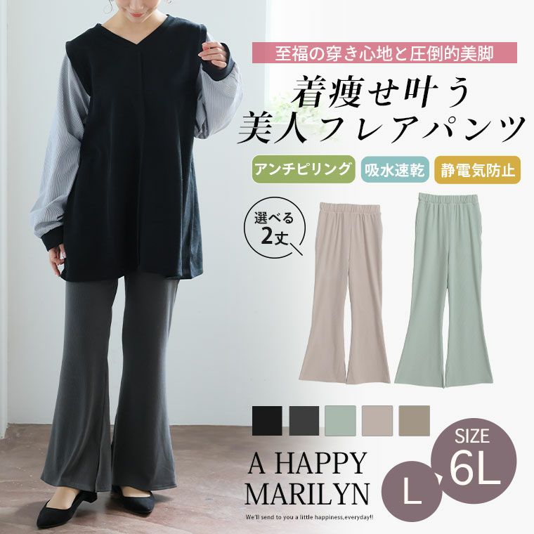 他の画像を見る オリジナル ボトムス LL 3L 4L 5L 6L 冬 ぽっちゃり ゆったり お腹 太もも お尻 腰周り すっきり 着やせ 体型カバー リブ ポッチャリ的温活! 暖かいのに蒸れにくい!! 2丈から選べる 美脚 フレアパンツ 【ストレッチ】 【ウェストゴム】 | 大きいサイズの通販ならハッピーマリリン 小柄さん丈有 在庫特価 定価 ¥ 1,980 のところ 価格 ¥ 1,500 税込 4.21 お気に入りに登録する