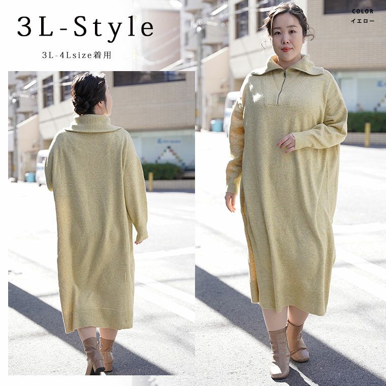 他の画像を見る ワンピ デザインワンピ LL 3L 4L 5L 6L 冬 冬物 冬服 ぽっちゃり ゆったり かわいい カジュアル ナチュラル プラスサイズ しっかり素材で作った 体型カバー ハーフジップ ニットワンピース | 大きいサイズの通販ならハッピーマリリン 在庫特価 定価 ¥ 4,990 のところ 価格 ¥ 3,000 税込 4.00 お気に入りに登録する