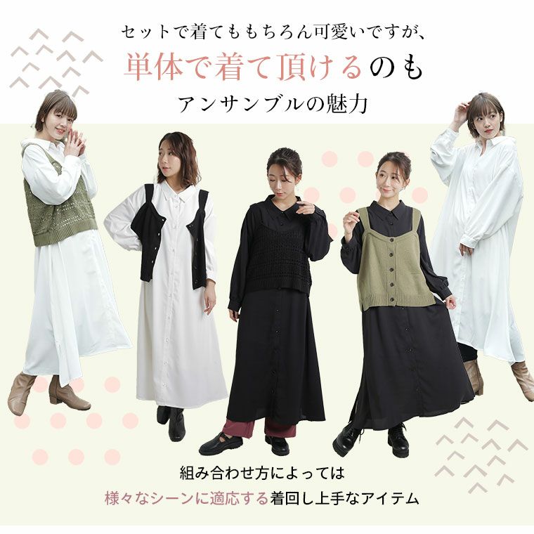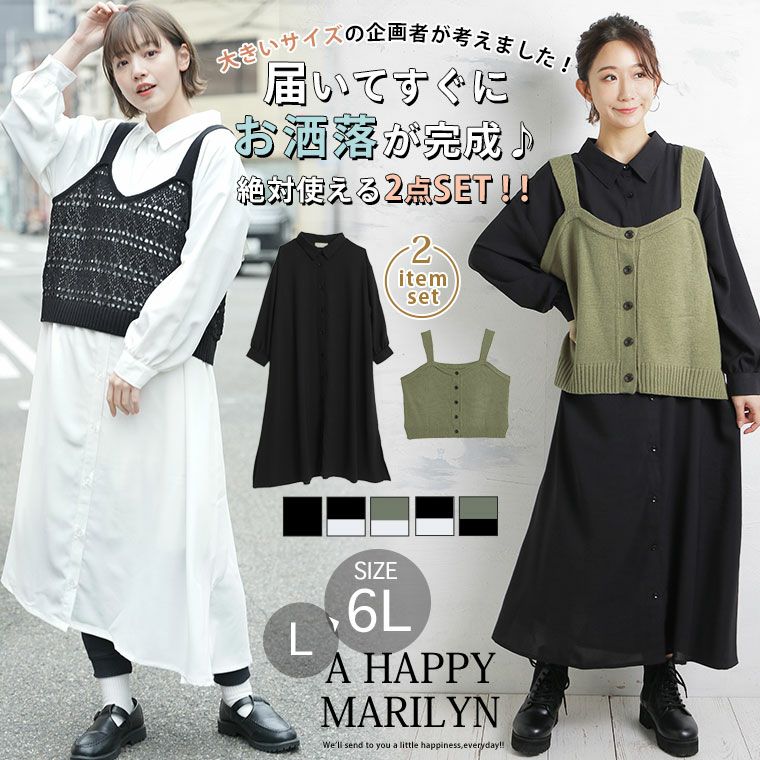 他の画像を見る オリジナル コーデセット set LL 3L 4L 5L 6L 冬 冬物 冬服 ぽっちゃり ゆったり 大きいサイズ着用の企画者が作りました! 簡単コーディネートで可愛く体型カバー! ロングシャツ&ニットキャミソール セット | 大きいサイズの通販ならハッピーマリリン 価格 ¥ 4,990 税込 4.29 お気に入りに登録する