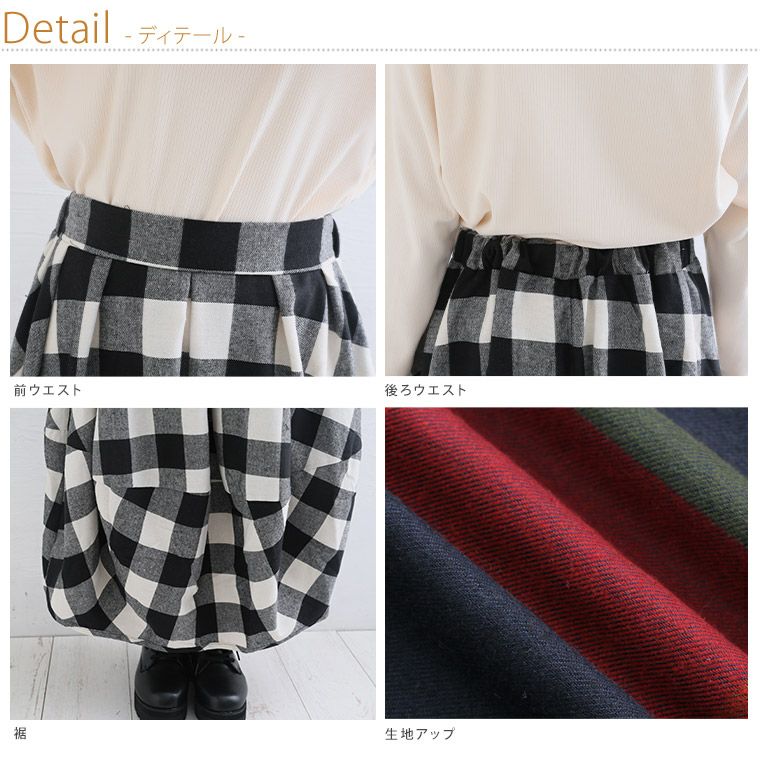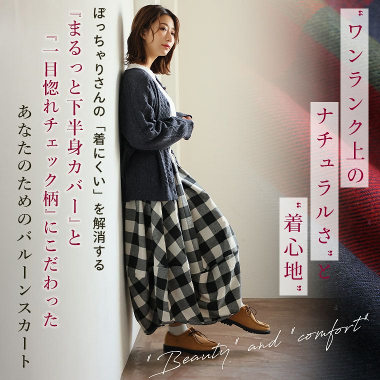 他の画像を見る ボトムス ロングスカート LL 3L 4L 5L 6L 冬 冬物 冬服 ぽっちゃり ゆったり 体型カバー パステルリーフ コクーン かわいい おしゃれ カジュアル ナチュラル プラスサイズ 【Pastel Leaf】 チェック バルーンスカート 【ウェストゴム】 | 大きいサイズの通販ならハッピーマリリン 在庫特価 定価 ¥ 4,180 のところ 価格 ¥ 3,000 税込 4.71 お気に入りに登録する
