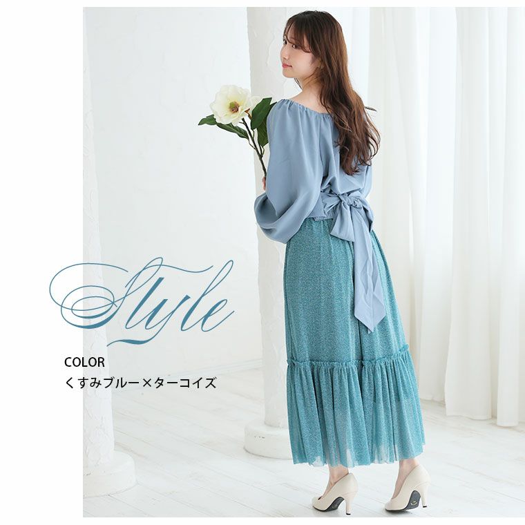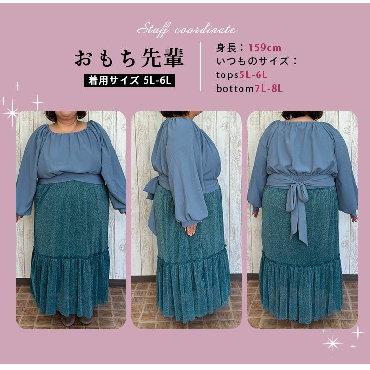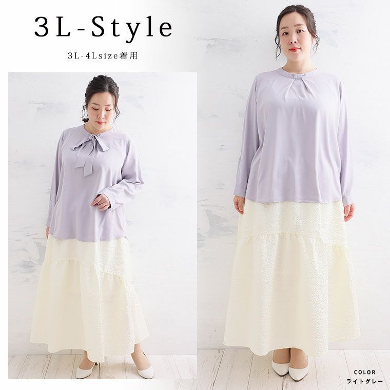 他の画像を見る オリジナル コーデセット 2点セット LL 3L 4L 5L 6L 冬 冬物 冬服 ぽっちゃり ゆったり お腹 太もも 腰周り 二の腕カバー お尻 胸周り 長袖 KAREN バックリボン ブラウス×ラメチュールティアードスカート SET | 大きいサイズの通販ならハッピーマリリン 在庫特価 定価 ¥ 5,490 のところ 価格 ¥ 3,000 税込 3.33 お気に入りに登録する