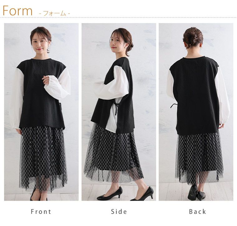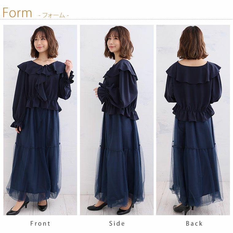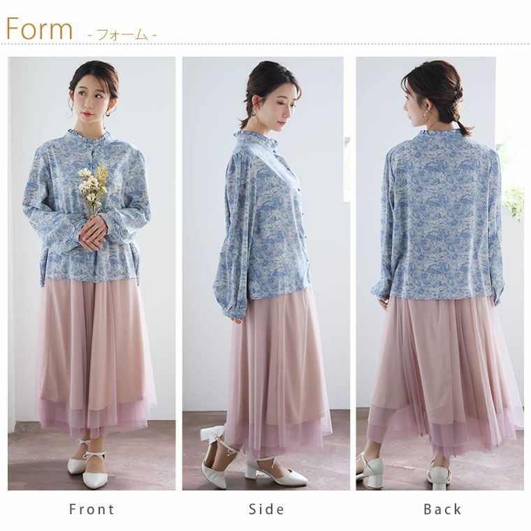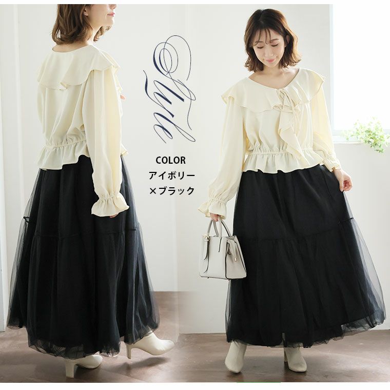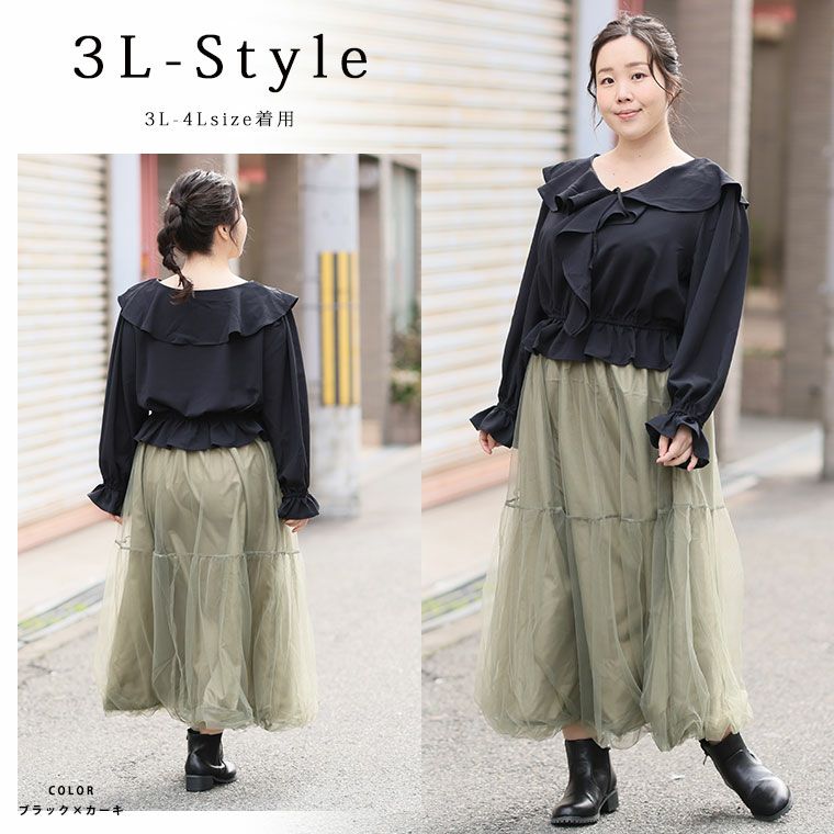 他の画像を見る オリジナル コーデセット 2点set LL 3L 4L 5L 6L 冬 冬物 冬服 ぽっちゃり ゆったり お腹 太もも 胸周り 二の腕カバー お尻 腰周り 長袖 カレン 春 KAREN フリル襟ブラウス×チュールバルーンスカート SET | 大きいサイズの通販ならハッピーマリリン 価格 ¥ 5,490 税込 4.14 お気に入りに登録する