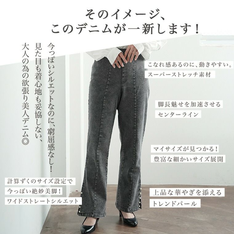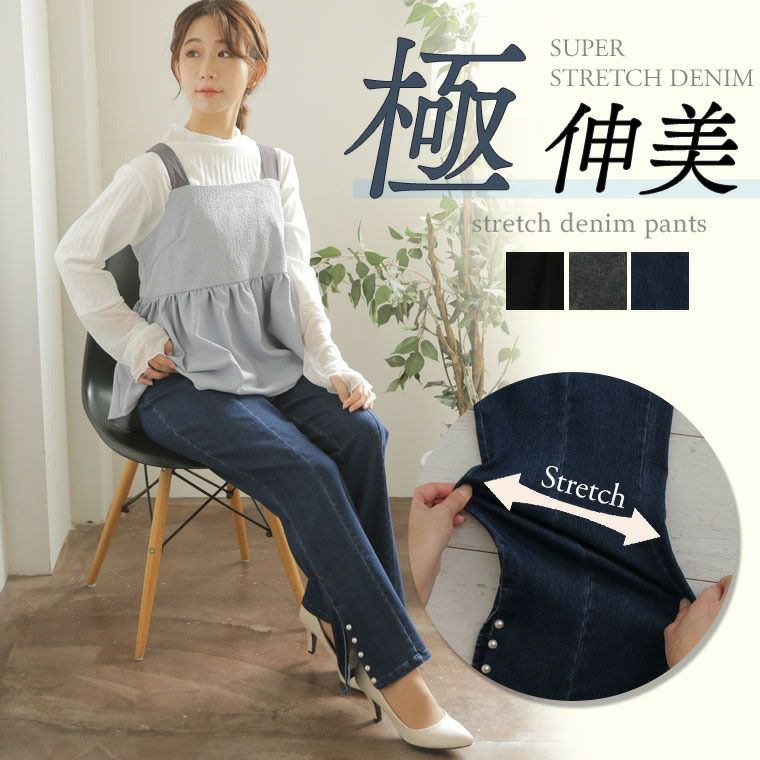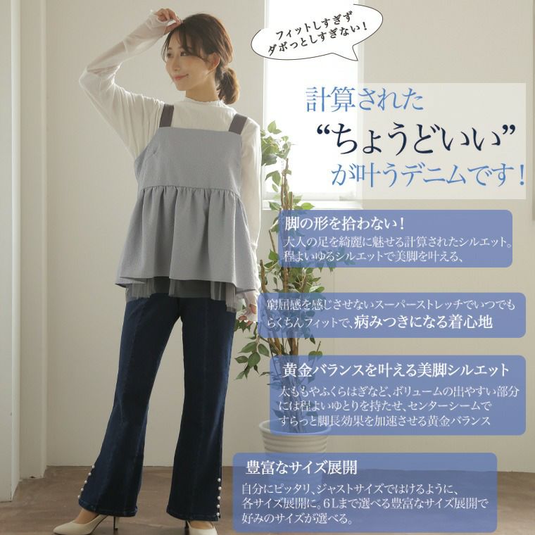 他の画像を見る パンツ デニム LL 3L 4L 5L 6L 冬 ぽっちゃり パールアイテム リン プラスサイズ Rin 上品に着映える! スーパーストレッチ 裾パール デニムパンツ 大人 着やせ 体型カバー ビジネス 通勤 ママ 【ストレッチ】 | 大きいサイズの通販ならハッピーマリリン 在庫特価 定価 ¥ 3,990 のところ 価格 ¥ 3,000 税込 3.54 お気に入りに登録する