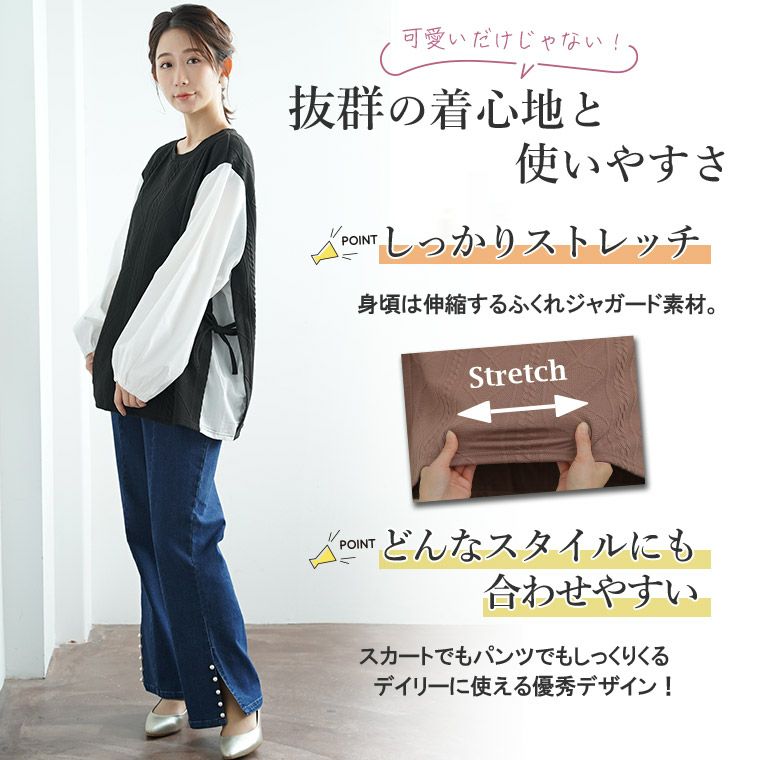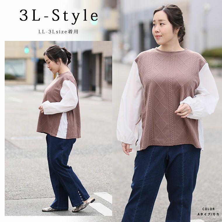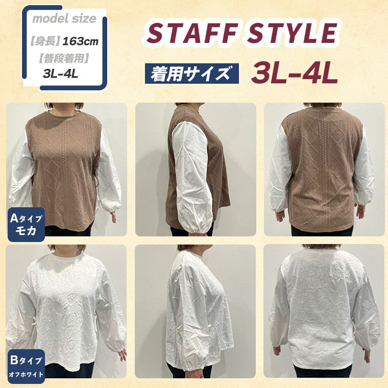 他の画像を見る Tシャツ カットソー LL 3L 4L 春 春物 春服 ぽっちゃり ゆったり お腹 お尻 腰周り 長袖 チュニック 体型カバー ナチュラル プラスサイズ 選べる! 膨れジャガード×袖布帛 ドッキングプルオーバー | 大きいサイズの通販ならハッピーマリリン 価格 ¥ 2,790 税込 4.50 お気に入りに登録する
