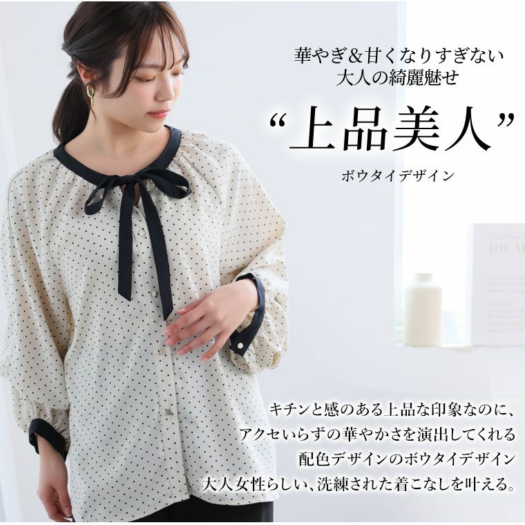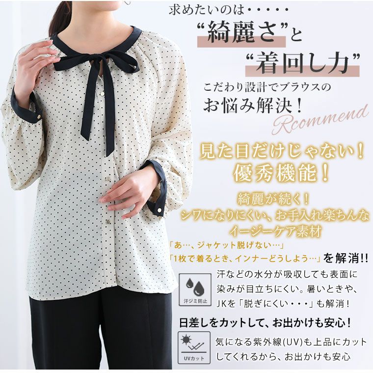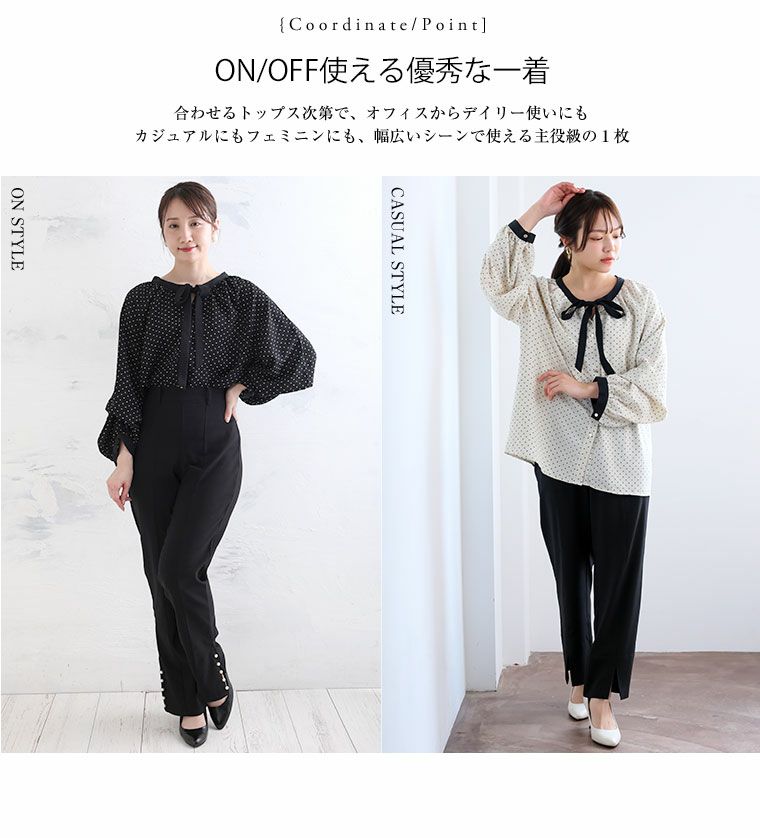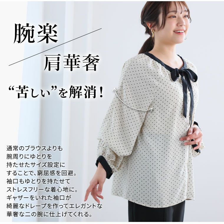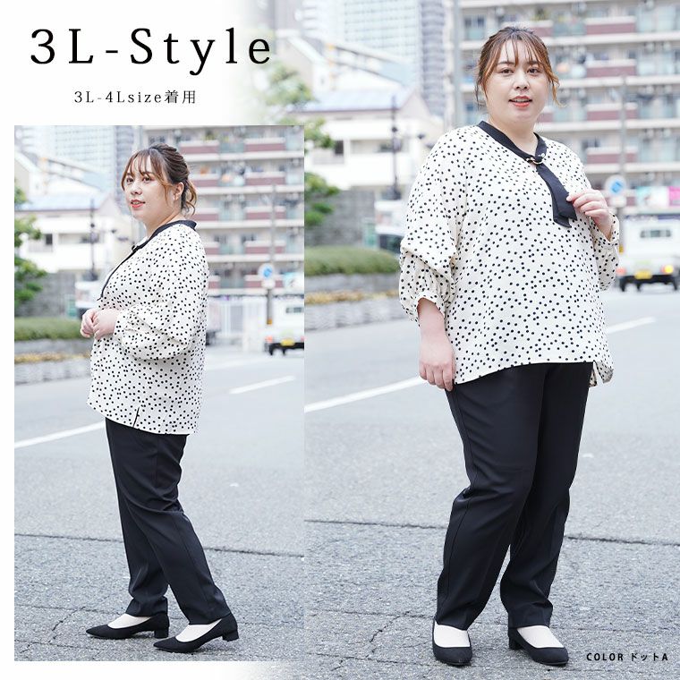 他の画像を見る シャツ トップス LL 3L 4L 5L 6L 春 リン ゆったり Rin 優秀機能の洗練美人 ポーラ ドット ボウタイブラウス UV 汗染み防止 オフィス 大人 着やせ 体型カバー ビジネス 通勤 ママ セレモニー uv 【セレモニー】 | 大きいサイズの通販ならハッピーマリリン 価格 ¥ 4,490 税込 4.33 お気に入りに登録する