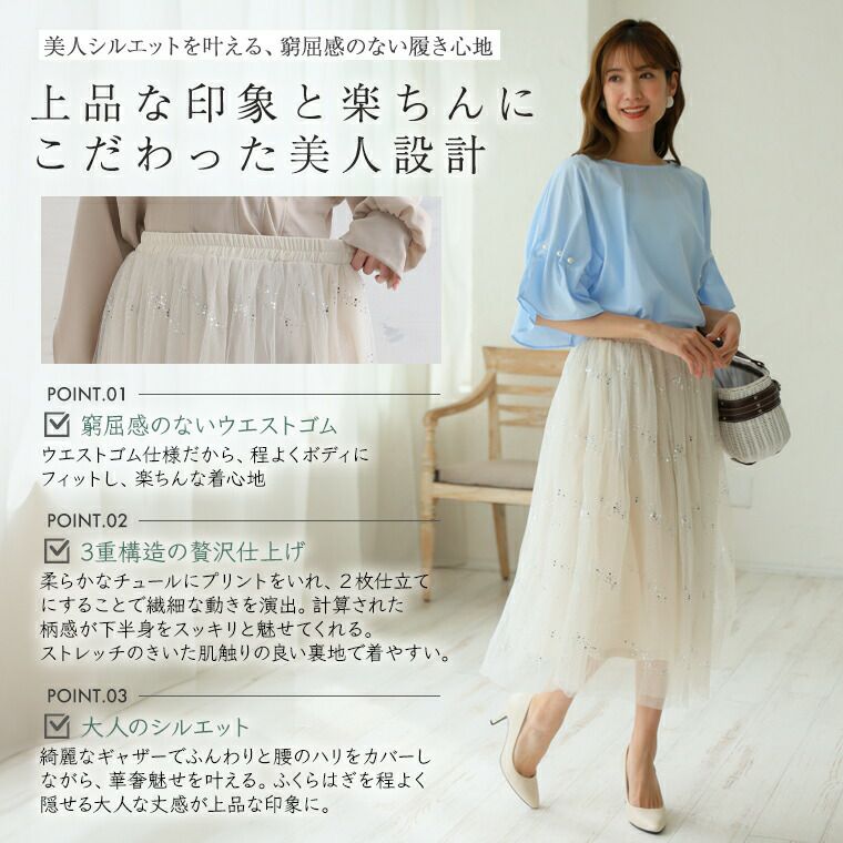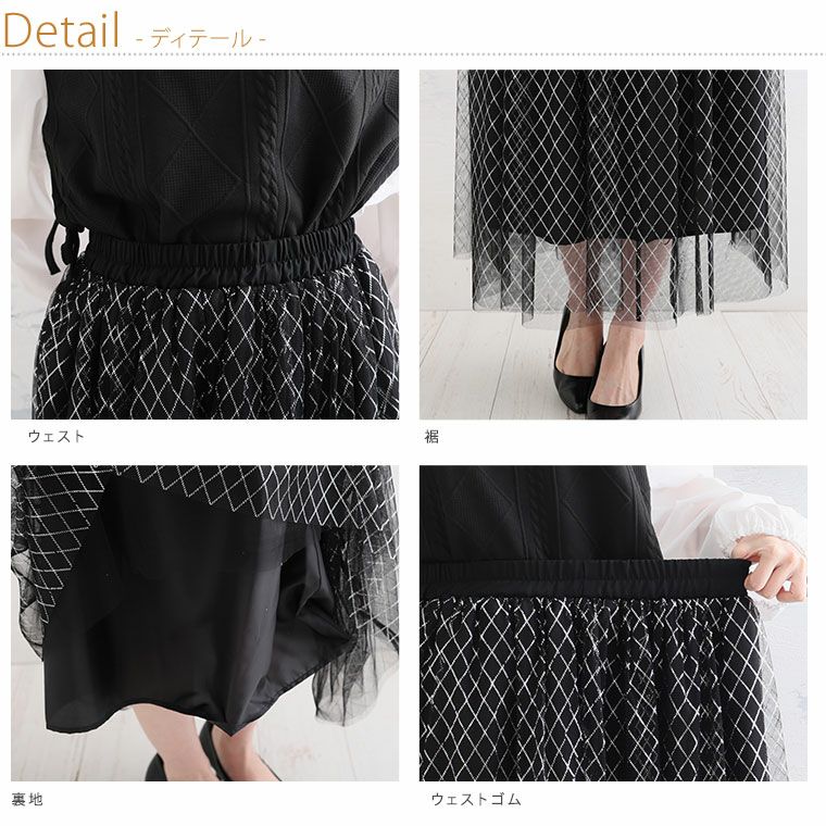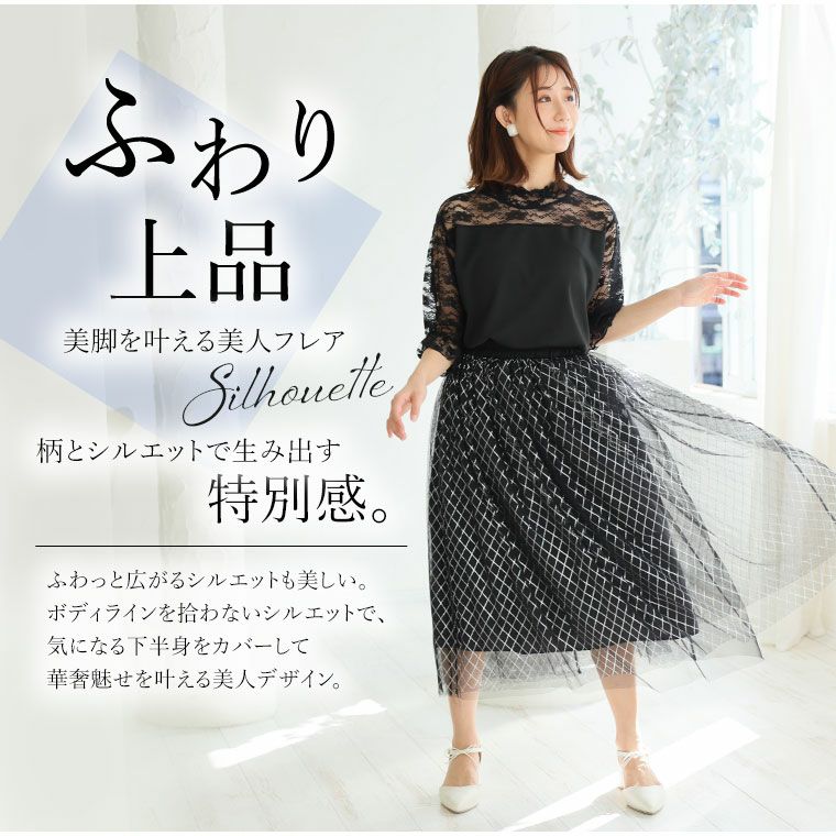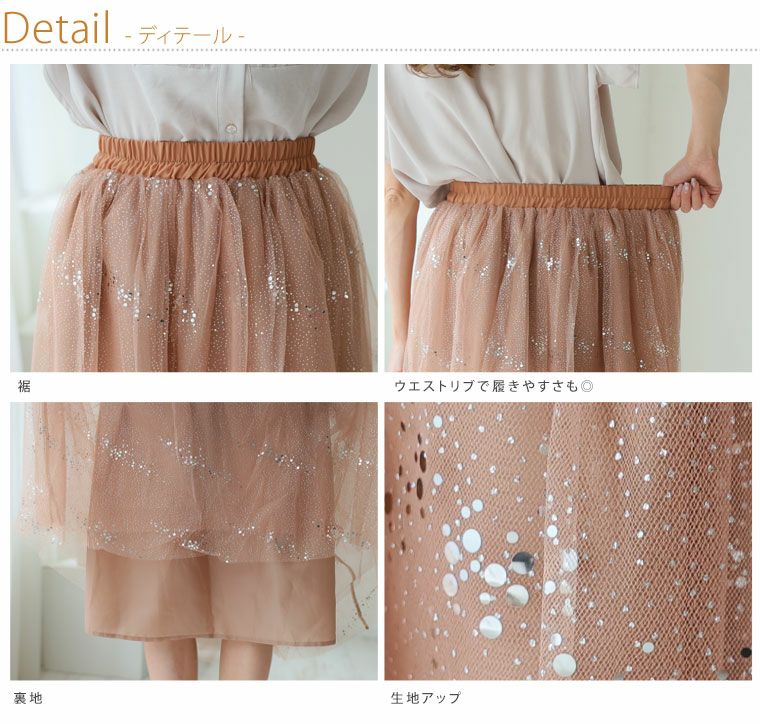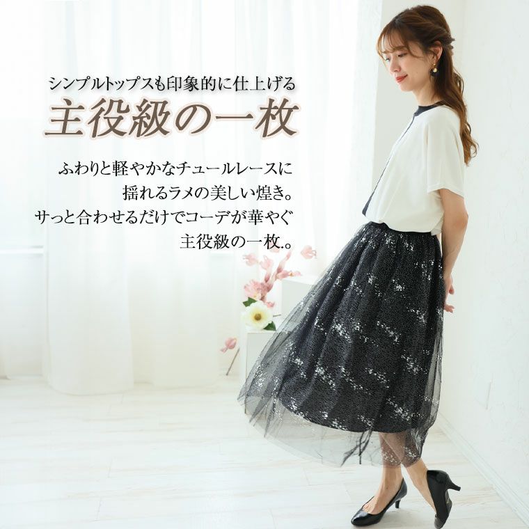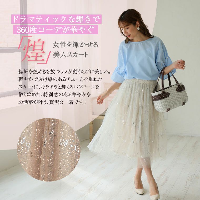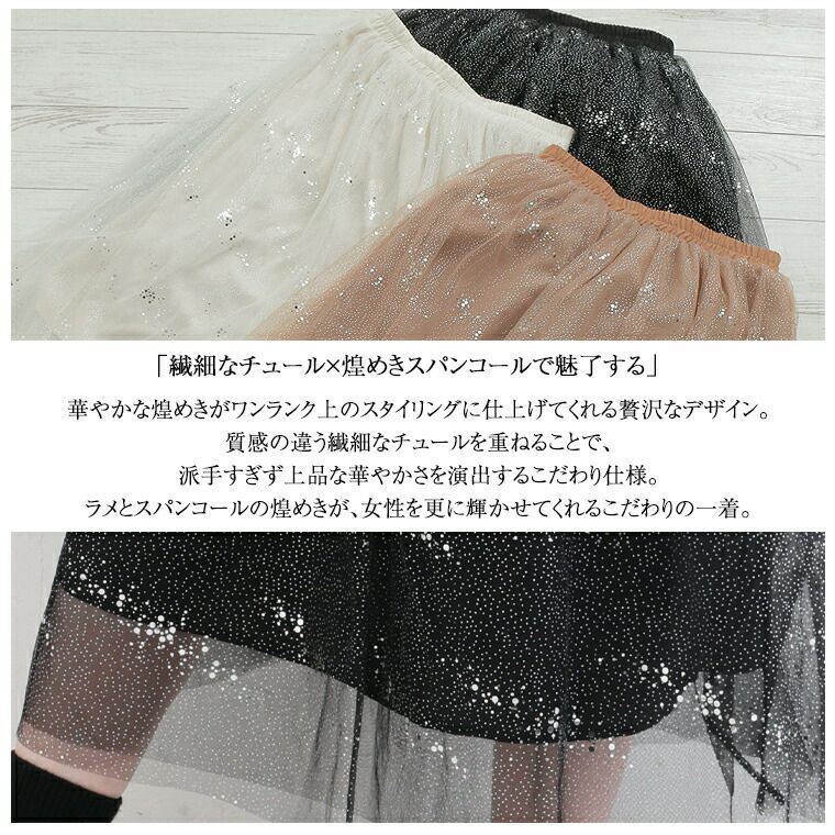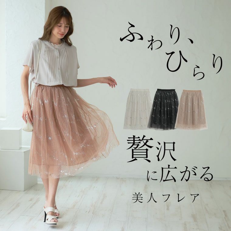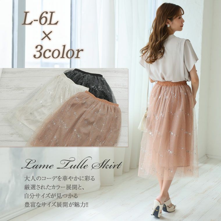 他の画像を見る ボトムス フレアスカート LL 3L 4L 5L 6L 春 春物 春服 ぽっちゃり ゆったり リン キレイめ 上品 高見え 華やか ママファッション オフィスカジュアル プラスサイズ 華やぎレディ スパンコール ラメ チュールスカート | 大きいサイズの通販ならハッピーマリリン 価格 ¥ 4,990 税込 お気に入りに登録する