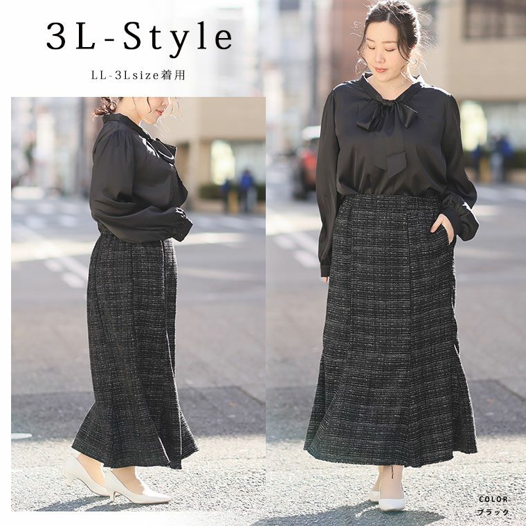 他の画像を見る ボトムス ロング LL 3L 4L 5L リン プラスサイズ 春 Rin 華やぎ美人な ファンシーツイード マーメイドスカート オフィス 大人 着やせ 体型カバー ビジネス 通勤 ママ セレモニー 【セレモニー】 | 大きいサイズの通販ならハッピーマリリン 価格 ¥ 4,490 税込 3.67 お気に入りに登録する