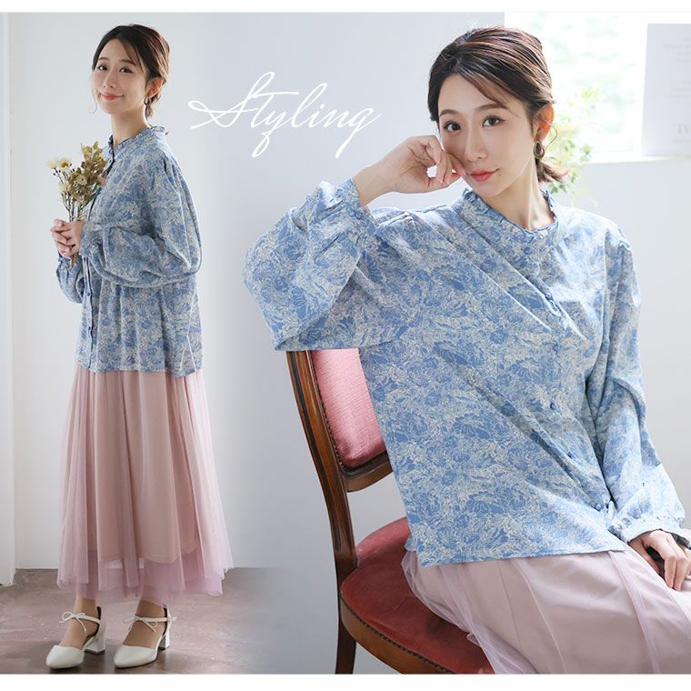 他の画像を見る トップス シャツ LL 3L 4L 春 胸周り 二の腕カバー 長袖 フェミニン パフスリーブ ぽわん袖 プラスサイズ ジョーゼット 花柄プリント フリル プチハイブラウス | 大きいサイズの通販ならハッピーマリリン 在庫特価 定価 ¥ 3,990 のところ 価格 ¥ 2,500 税込 4.00 お気に入りに登録する