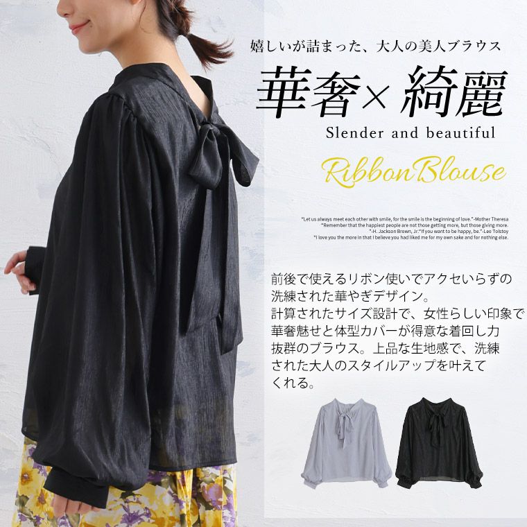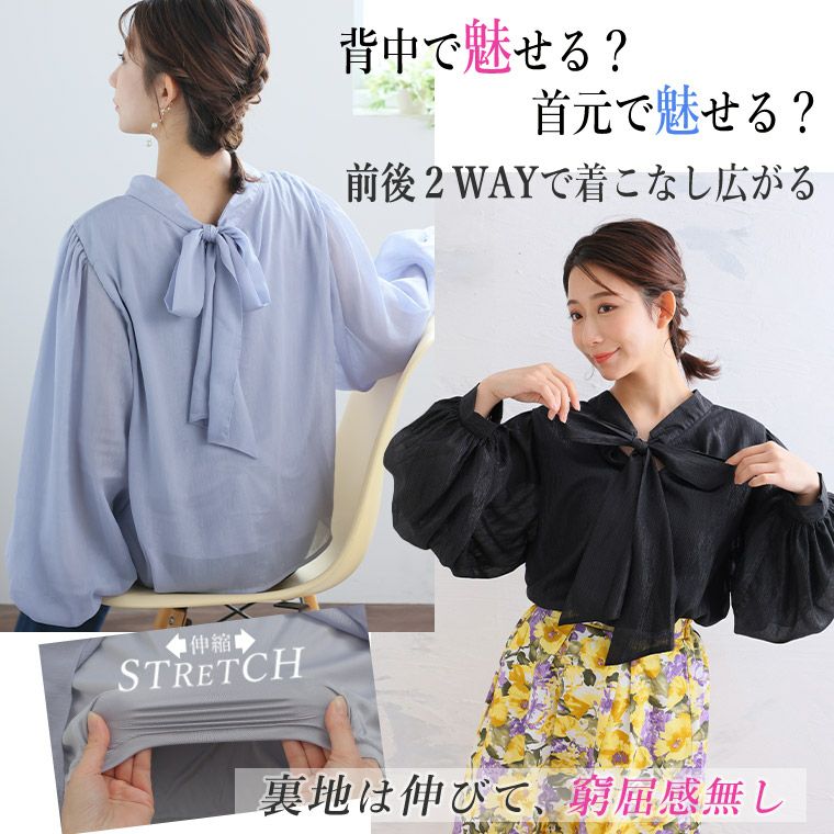 他の画像を見る トップス シャツ LL 3L 4L 春 ぽっちゃり ゆったり お腹 胸周り フェミニン おでかけ パーティ ボウタイ リボン プラスサイズ 楊柳ラメ バルーンスリーブ 2wayブラウス 【セレモニー】 | 大きいサイズの通販ならハッピーマリリン 価格 ¥ 3,790 税込 4.00 お気に入りに登録する