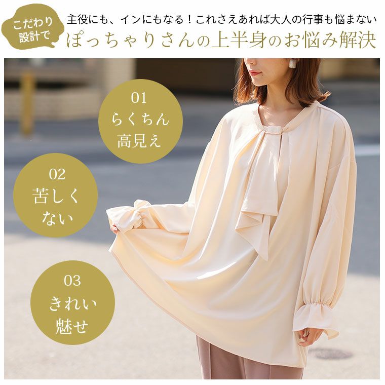 他の画像を見る オリジナル シャツ トップス LL 3L 4L 5L 6L 7L 8L 春 ぽっちゃり ゆったり リン セレモニー チュニック丈 上品 高見え プラスサイズ Rin 【選べる丈】 2WAY ボウタイ 華やかブラウス 【セレモニー】 | 大きいサイズの通販ならハッピーマリリン 小柄さん丈有 在庫特価 定価 ¥ 3,190 のところ 価格 ¥ 2,000 税込 4.20 お気に入りに登録する