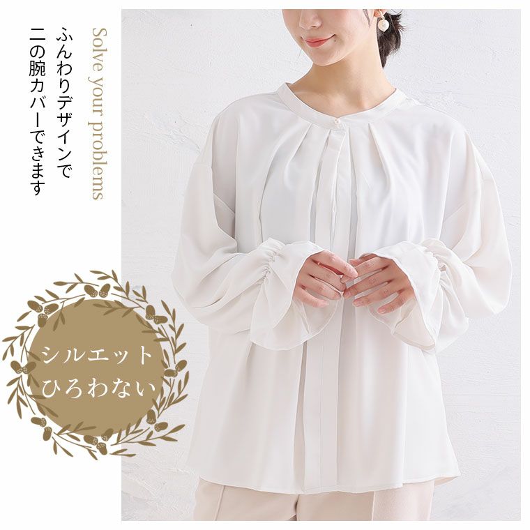 他の画像を見る トップス LL 3L 4L 5L 6L 春 春物 春服 ぽっちゃり オケージョン プラスサイズ Rin お悩み解消! UVカット 汗染み防止 ポーラ袖 ギャザーブラウス オフィス 大人 着やせ 体型カバー ビジネス 通勤 ママ セレモニー uv 【セレモニー】 | 大きいサイズの通販ならハッピーマリリン 価格 ¥ 4,990 税込 3.75 お気に入りに登録する