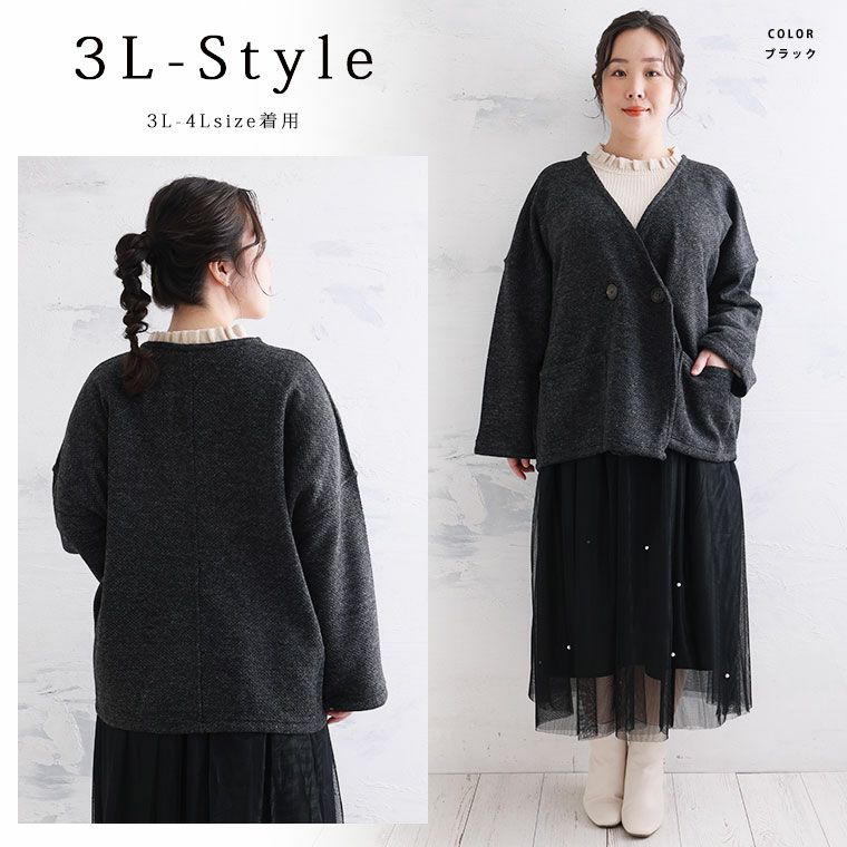 他の画像を見る トップス カーデ 羽織り LL 3L 4L 5L 6L 冬 冬物 冬服 ぽっちゃり ゆったり 長袖 アウター 短丈 かわいい おしゃれ カジュアル ナチュラル プラスサイズ 春 ダブル釦 ミックス地 ショートカーディガン | 大きいサイズの通販ならハッピーマリリン 価格 ¥ 4,490 税込 4.00 お気に入りに登録する