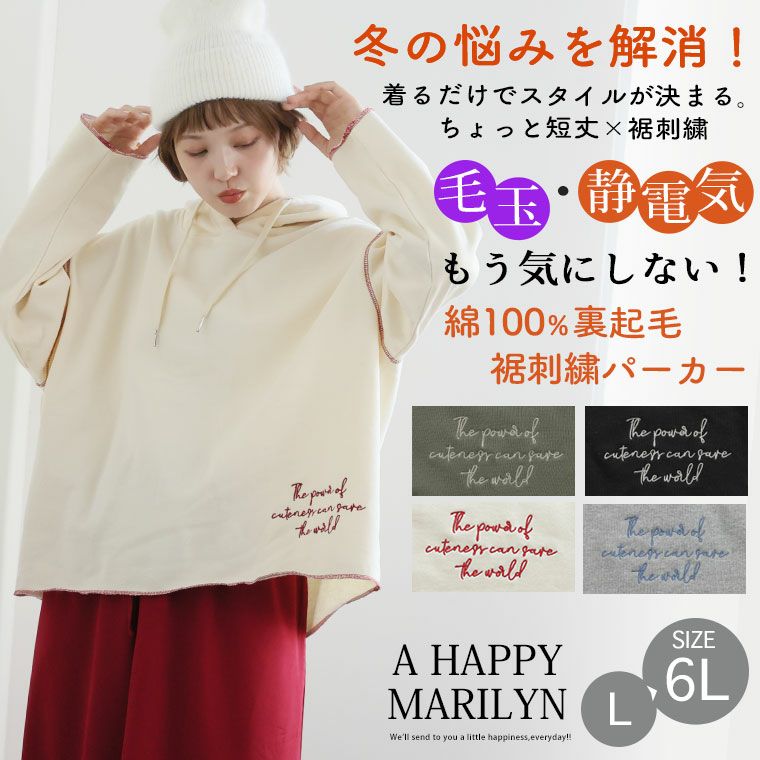 他の画像を見る オリジナル プルオーバー LL 3L 4L 5L 6L 冬 冬物 冬服 ぽっちゃり ゆったり お腹 胸周り 二の腕カバー 長袖 プラスサイズ 【毛玉・ぱちぱち静電気もう気にしない! 綿100% 裏起毛】少し短丈 裾刺繍 パーカー | 大きいサイズの通販ならハッピーマリリン 価格 ¥ 3,490 税込 3.33 お気に入りに登録する