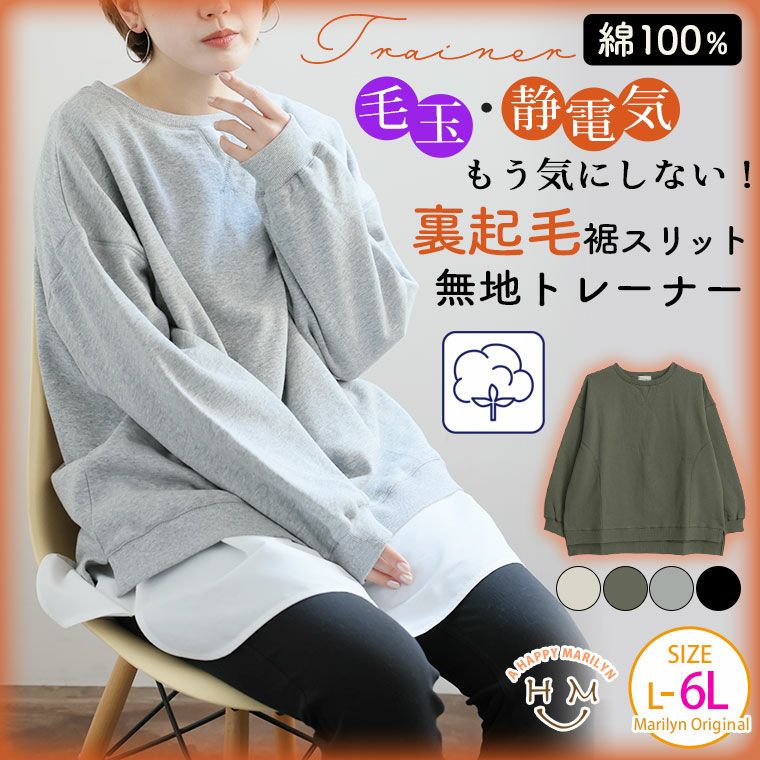 他の画像を見る オリジナル スウェット LL 3L 4L 5L 6L 冬 毛玉レス お腹 胸周り 二の腕カバー お尻 腰周り 長袖 【毛玉・ぱちぱち静電気もう気にしない! 綿100% 裏起毛】裾スリット 無地トレーナー | 大きいサイズの通販ならハッピーマリリン 在庫特価 定価 ¥ 3,190 のところ 価格 ¥ 2,500 税込 4.71 お気に入りに登録する