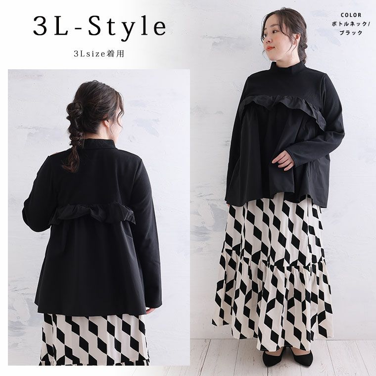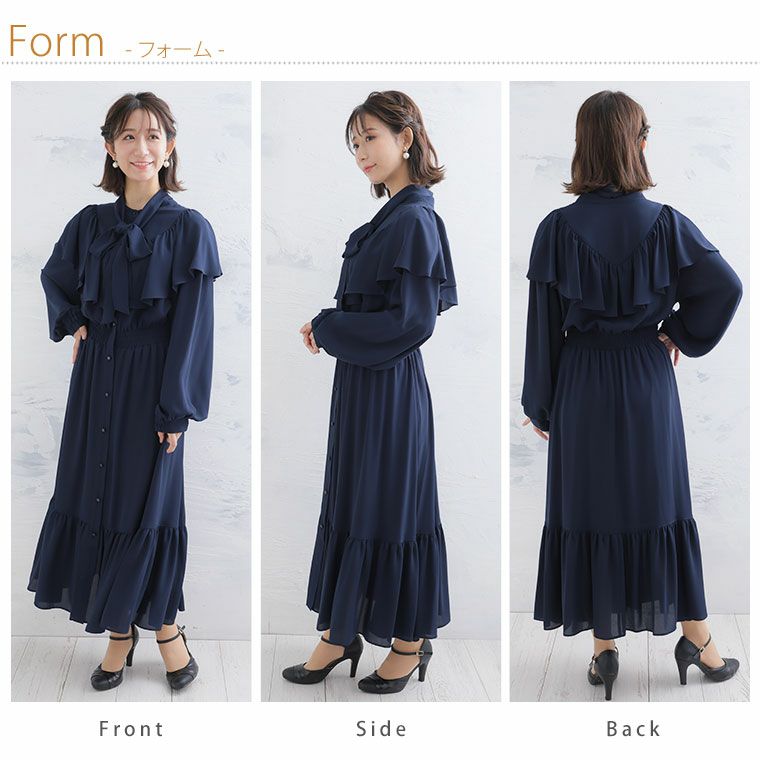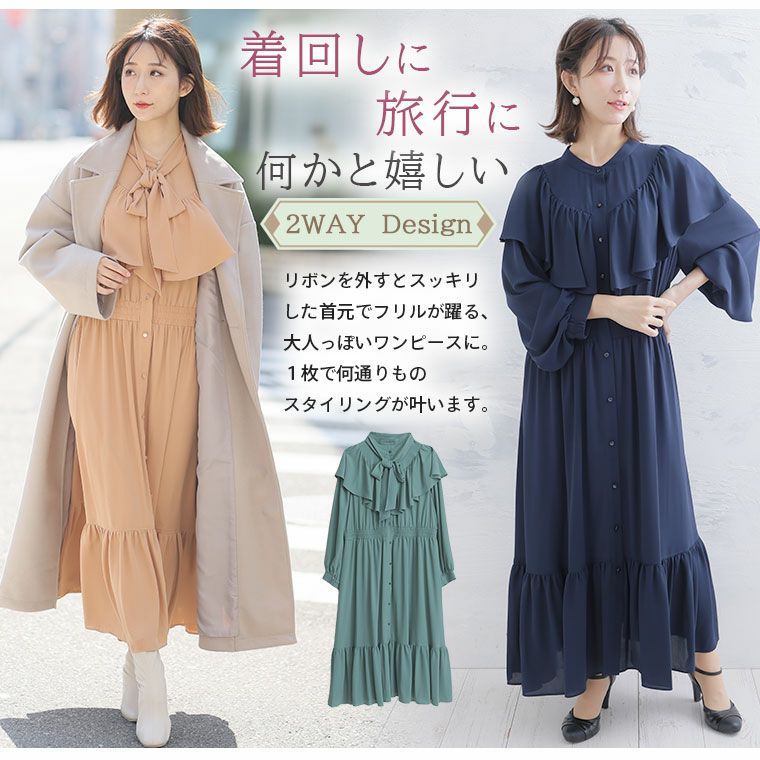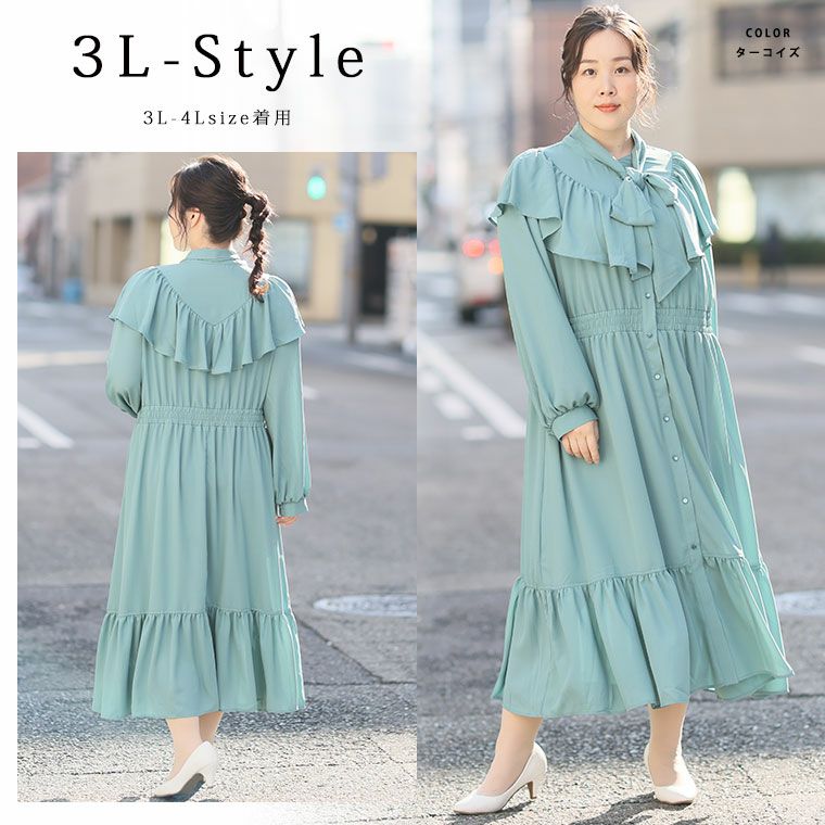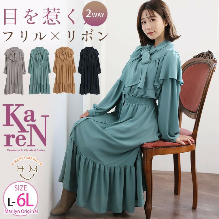 他の画像を見る オリジナル ワンピ LL 3L 4L 5L 6L 冬 冬物 冬服 ぽっちゃり ゆったり お腹 太もも 胸周り 二の腕カバー お尻 腰周り 長袖 ボウタイリボン ケープ襟 ドレス プラスサイズ KAREN フリルフリルワンピース リボン付き | 大きいサイズの通販ならハッピーマリリン 在庫特価 定価 ¥ 4,990 のところ 価格 ¥ 3,000 税込 4.85 お気に入りに登録する