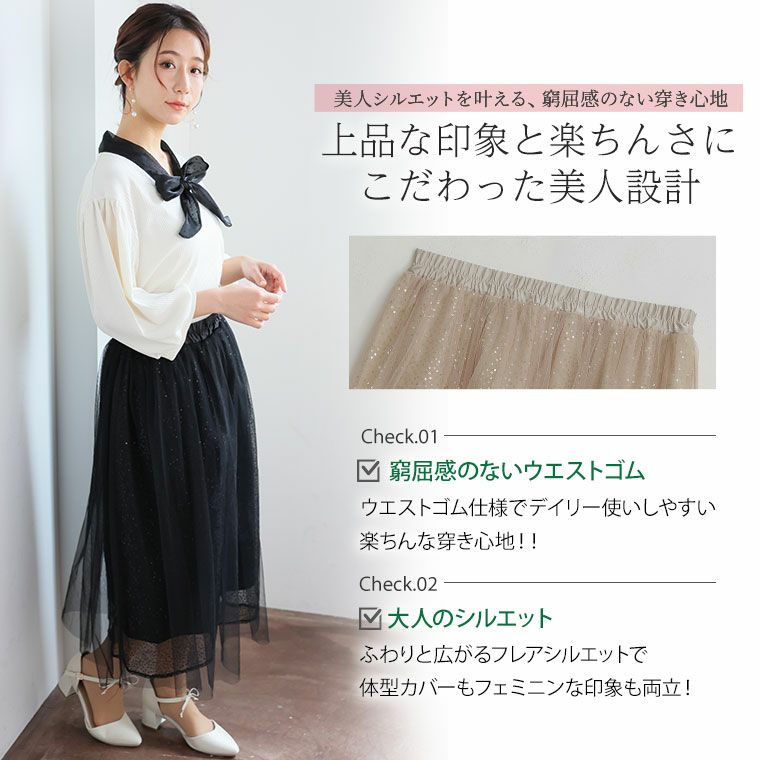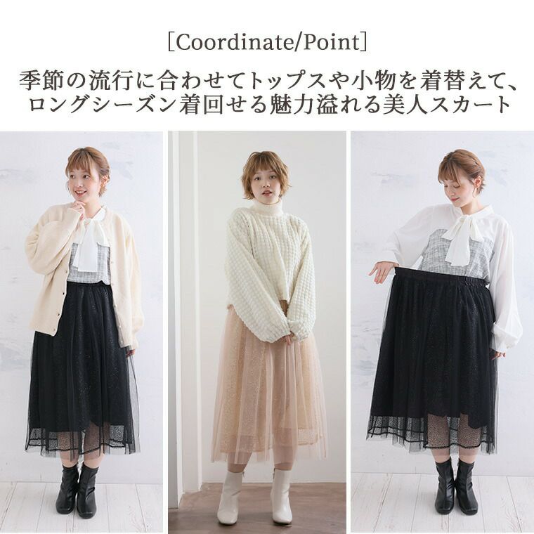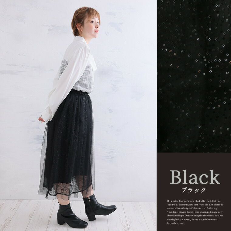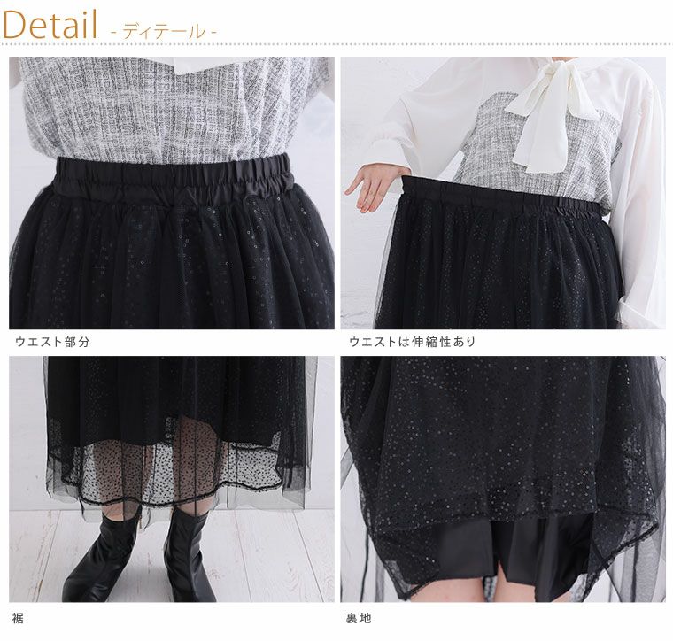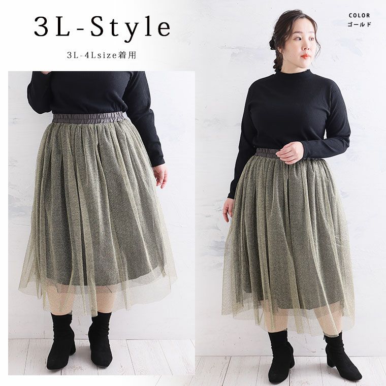 他の画像を見る ボトムス フレアースカート スパンコール 手洗い 華やか LL 3L 4L 冬 冬物 冬服 ぽっちゃり ゆったり 体型カバー かわいい おしゃれ カジュアル ナチュラル プラスサイズ スパンコール チュールスカート | 大きいサイズの通販ならハッピーマリリン 価格 ¥ 3,990 税込 お気に入りに登録する