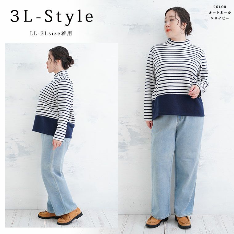 他の画像を見る カットソー プルオーバー LL 3L 4L 冬 冬物 冬服 ぽっちゃり ゆったり 長袖 あったか 裏起毛 かわいい おしゃれ カジュアル ナチュラル プラスサイズ オーバーサイズ ボーダー切替 ハイネックチュニック | 大きいサイズの通販ならハッピーマリリン 在庫特価 定価 ¥ 1,690 のところ 価格 ¥ 999 税込 3.83 お気に入りに登録する