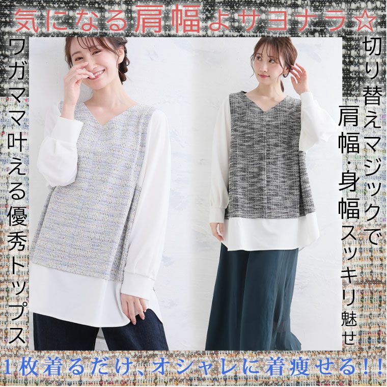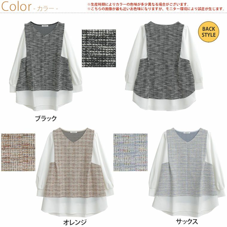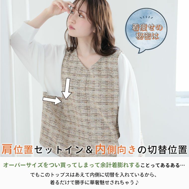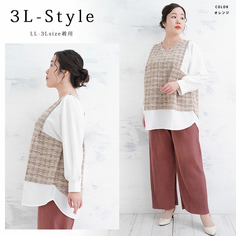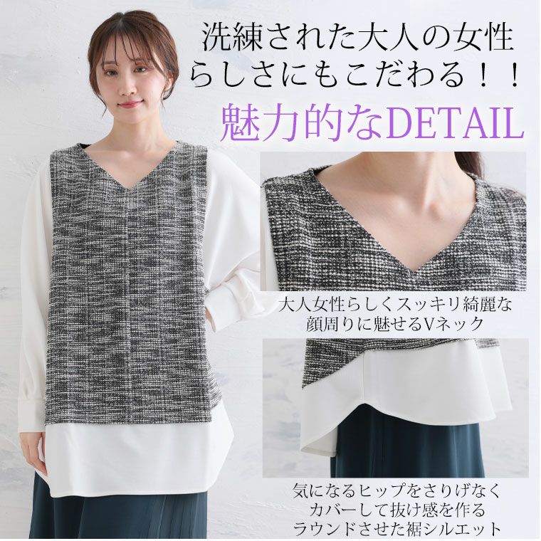 他の画像を見る カットソー プルオーバー LL 3L 4L 5L 冬 冬物 冬服 ぽっちゃり ゆったり かわいい おしゃれ カジュアル ナチュラル プラスサイズ フェミニン 春 【MAGICAL LINE】 華奢見え カットツイード ベスト風プルオーバー | 大きいサイズの通販ならハッピーマリリン 価格 ¥ 3,490 税込 3.25 お気に入りに登録する