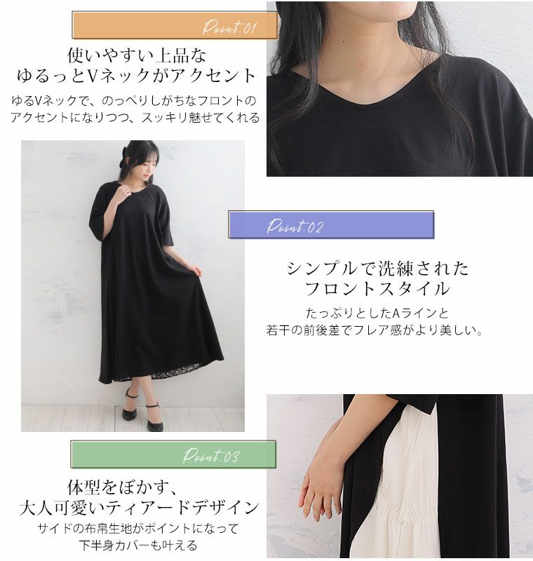 他の画像を見る オリジナル ワンピ LL 3L 4L 5L 6L 夏 夏物 夏服 夏用 お腹 太もも お尻 半袖 新デザイン追加!! 2丈から選べる「着て楽・考えなくて楽」この夏欠かせない レイヤード風 バック切替 ワンピース | 大きいサイズの通販ならハッピーマリリン 小柄さん丈有 在庫特価 定価 ¥ 3,490 のところ 価格 ¥ 2,000 税込 3.60 お気に入りに登録する