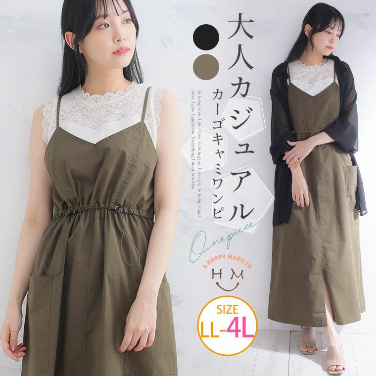 他の画像を見る ワンピ キャミワンピ LL 3L 4L 夏 夏物 夏服 夏用 ぽっちゃり ゆったり 太もも お尻 綿100% かわいい おしゃれ カジュアル ナチュラル プラスサイズ ツイル ウエストドロスト カーゴ キャミワンピース | 大きいサイズの通販ならハッピーマリリン 価格 ¥ 4,990 税込 4.00 お気に入りに登録する