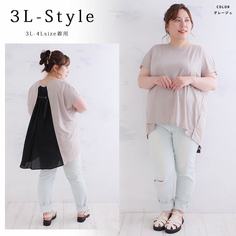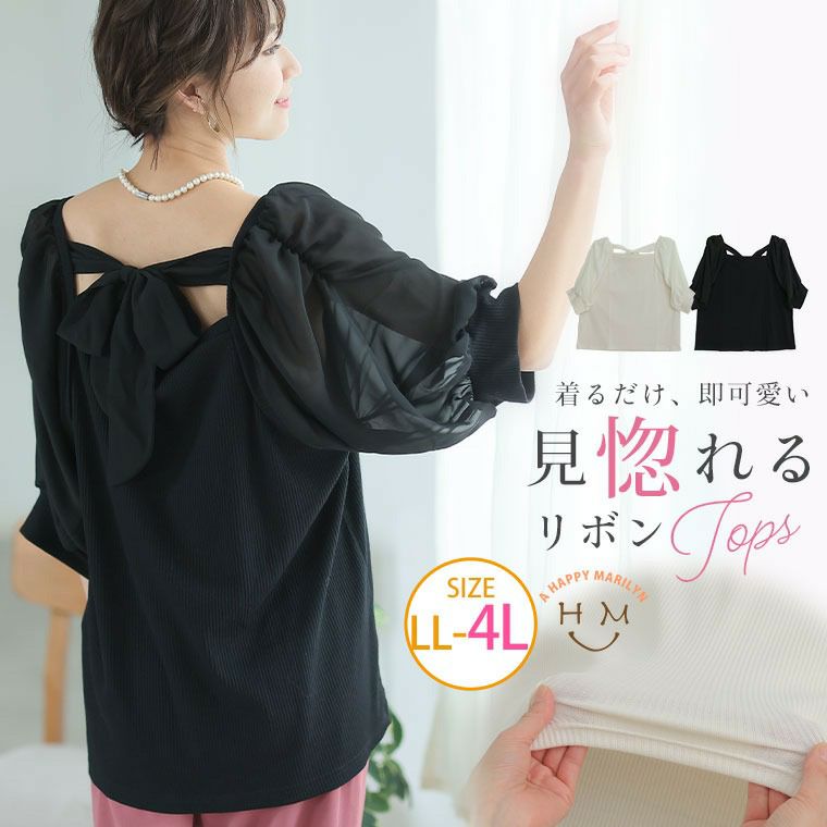 他の画像を見る トップス カットソー プルオーバー LL 3L 4L 夏 夏物 夏服 夏用 ぽっちゃり ゆったり かわいい おしゃれ カジュアル ナチュラル プラスサイズ フェミニン ガーリー 後リボン ボリューム 五分袖 リブトップス | 大きいサイズの通販ならハッピーマリリン 価格 ¥ 2,790 税込 4.25 お気に入りに登録する