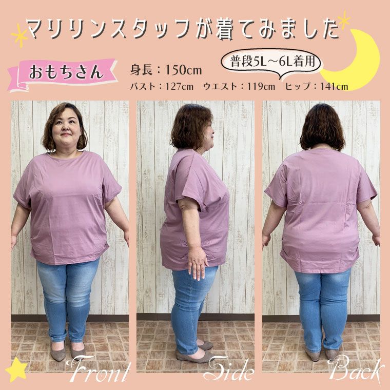他の画像を見る カットソー LL 3L 4L 5L 6L 夏 夏物 夏服 夏用 ぽっちゃり ゆったり お腹 胸周り 二の腕カバー 半袖 綿 コットン yutorimarilyn ゆとりマリリン 春 「ゆとりMARILYN」シルクタッチ・綿100% モモンガ Tシャツ | 大きいサイズの通販ならハッピーマリリン 価格 ¥ 4,990 税込 4.00 お気に入りに登録する