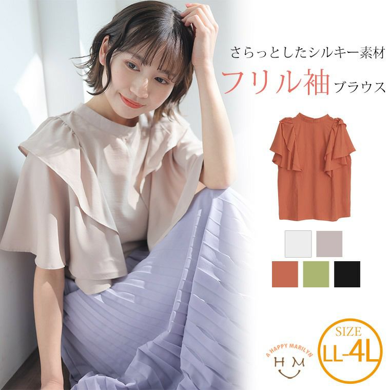 他の画像を見る シャツトップス LL 3L 4L 夏 夏物 夏服 夏用 ぽっちゃり ゆったり かわいい 二の腕カバー シルキージョーゼット フェミニン ガーリー おしゃれ カジュアル ナチュラル プラスサイズ ダブルフリル ブラウス | 大きいサイズの通販ならハッピーマリリン 価格 ¥ 4,590 税込 3.50 お気に入りに登録する