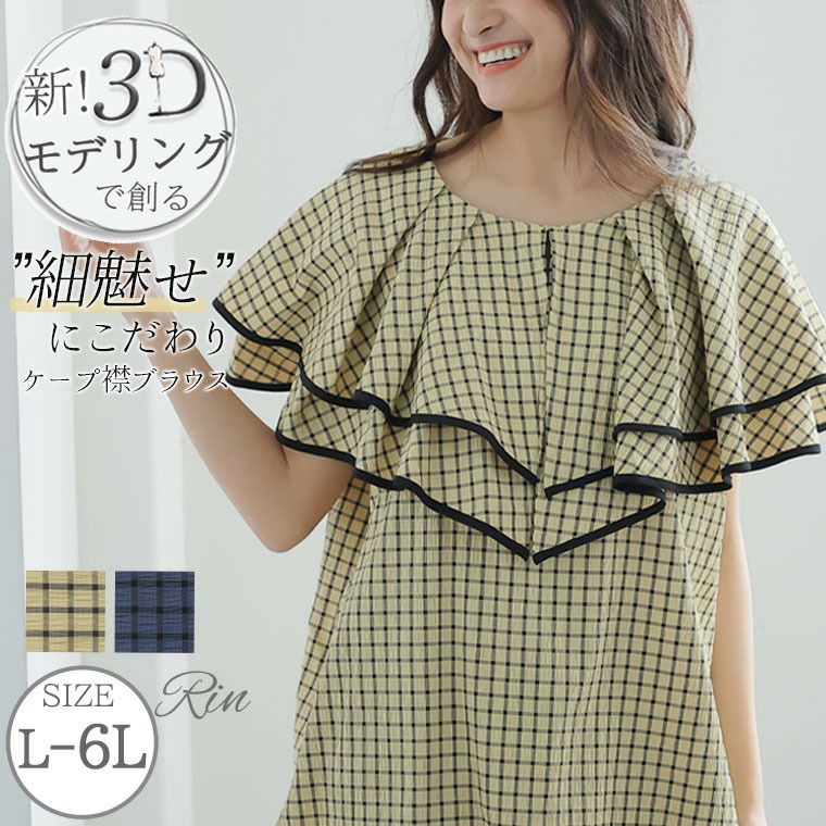他の画像を見る シャツ トップス LL 3L 4L 5L 6L 夏 夏物 夏服 夏用 ぽっちゃり ゆったり 胸周り 二の腕カバー ケープ 着やせ リン きれいめ 春 Rin 細魅せと体型カバーを追求! ケープカラー 楊柳 チェック パイピングブラウス | 大きいサイズの通販ならハッピーマリリン 価格 ¥ 4,990 税込 4.33 お気に入りに登録する
